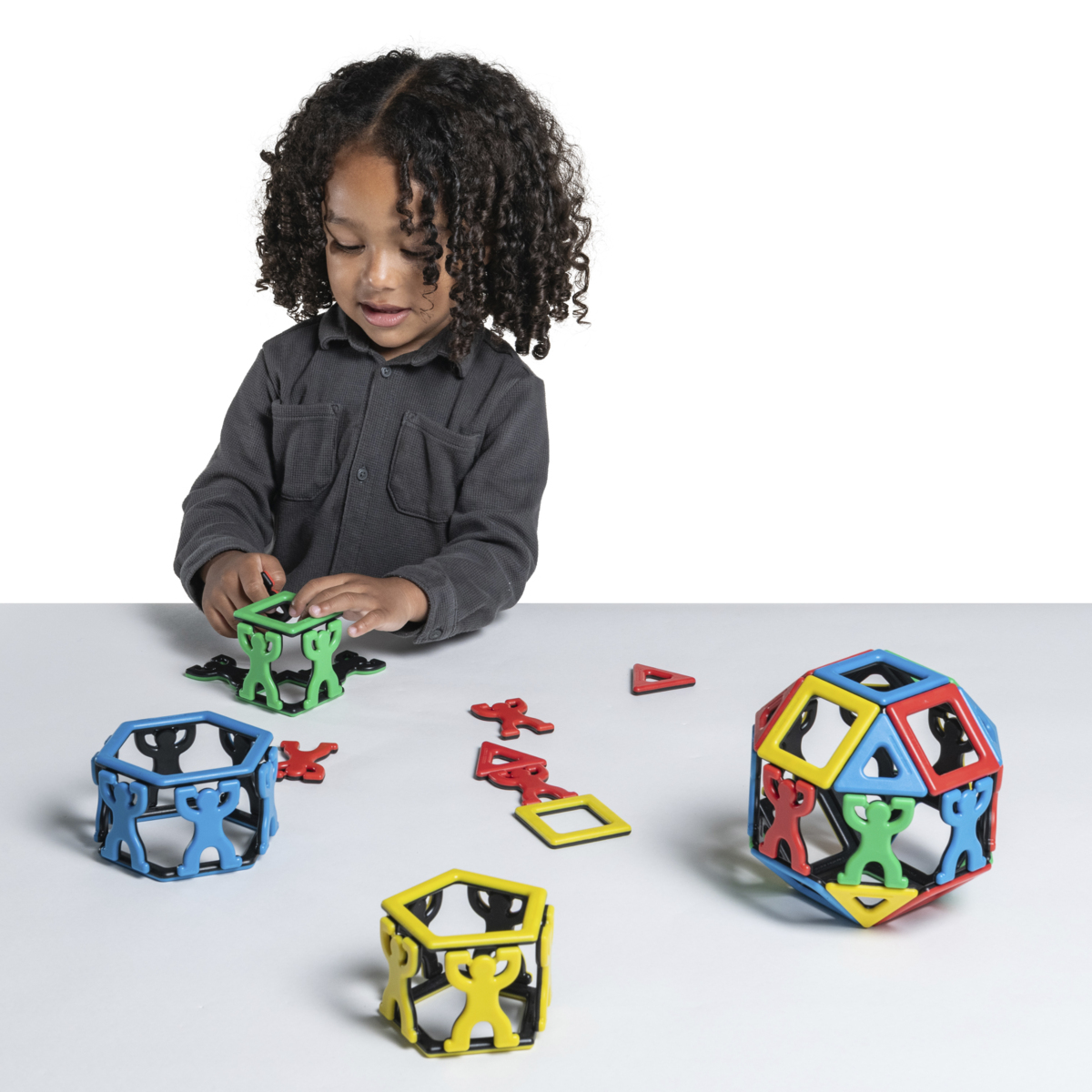 54 dele/pk. Lad børn udforske former og magnetisme igennem sjov og lærerig konstruktionsleg. Det farverige sæt indeholder flere geometriske former samt 27 akrobatiske figurer på 6 cm. Af genanvendt ABS. Fra 3 år.