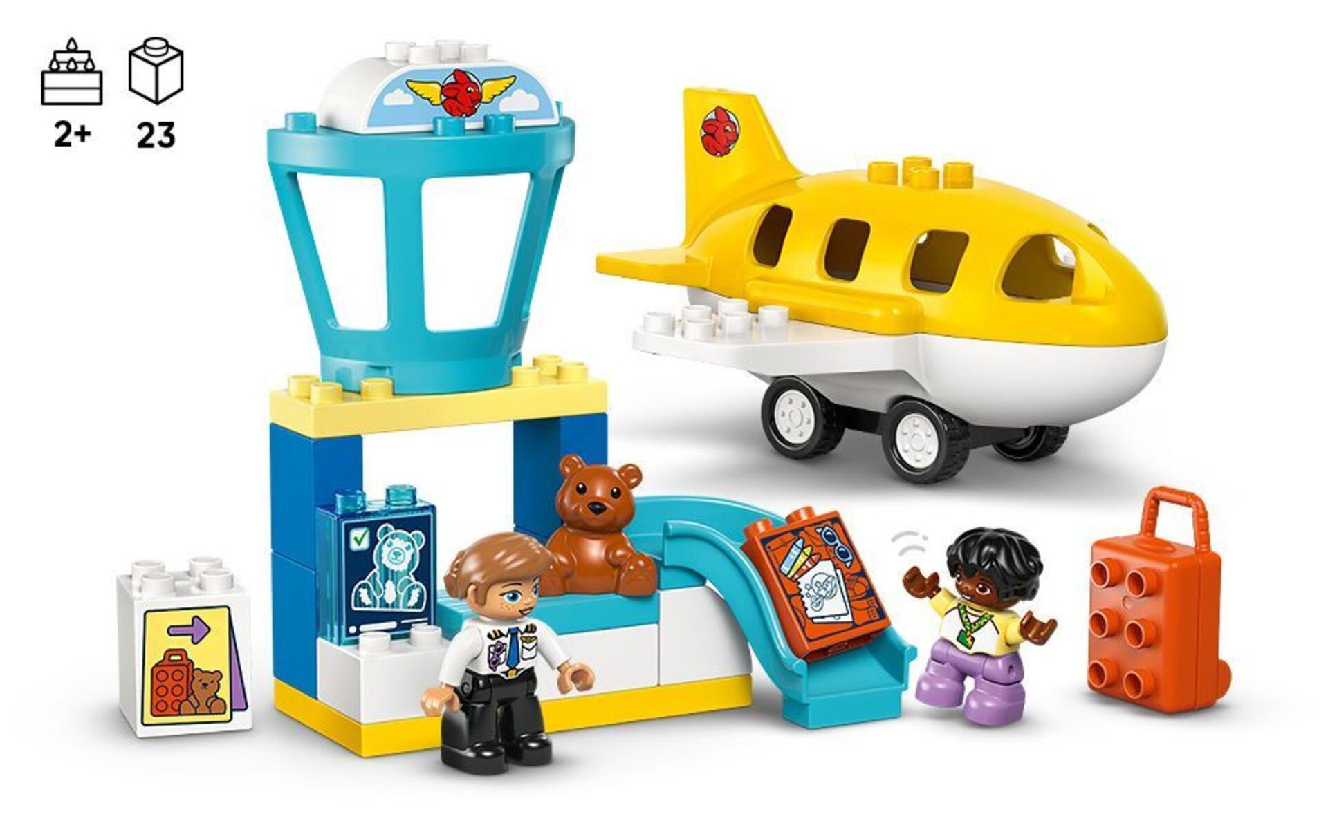 23 dele. Få børnenes fantasi til at lette med denne funktionsfyldte lufthavnsleg, der hjælper dem med at forstå deres følelser omkring en ny oplevelse. Byg lufthavnsmiljøet sammen med børnene, og leg at I pakker en kuffert og checker den ind. Brug følelseshjulet i byggevejledningen til at hjælpe børn med at udforske, hvordan det føles at flyve eller være i en travl lufthavn. Materiale: ABS. PVC-fri. Fra 2 år.