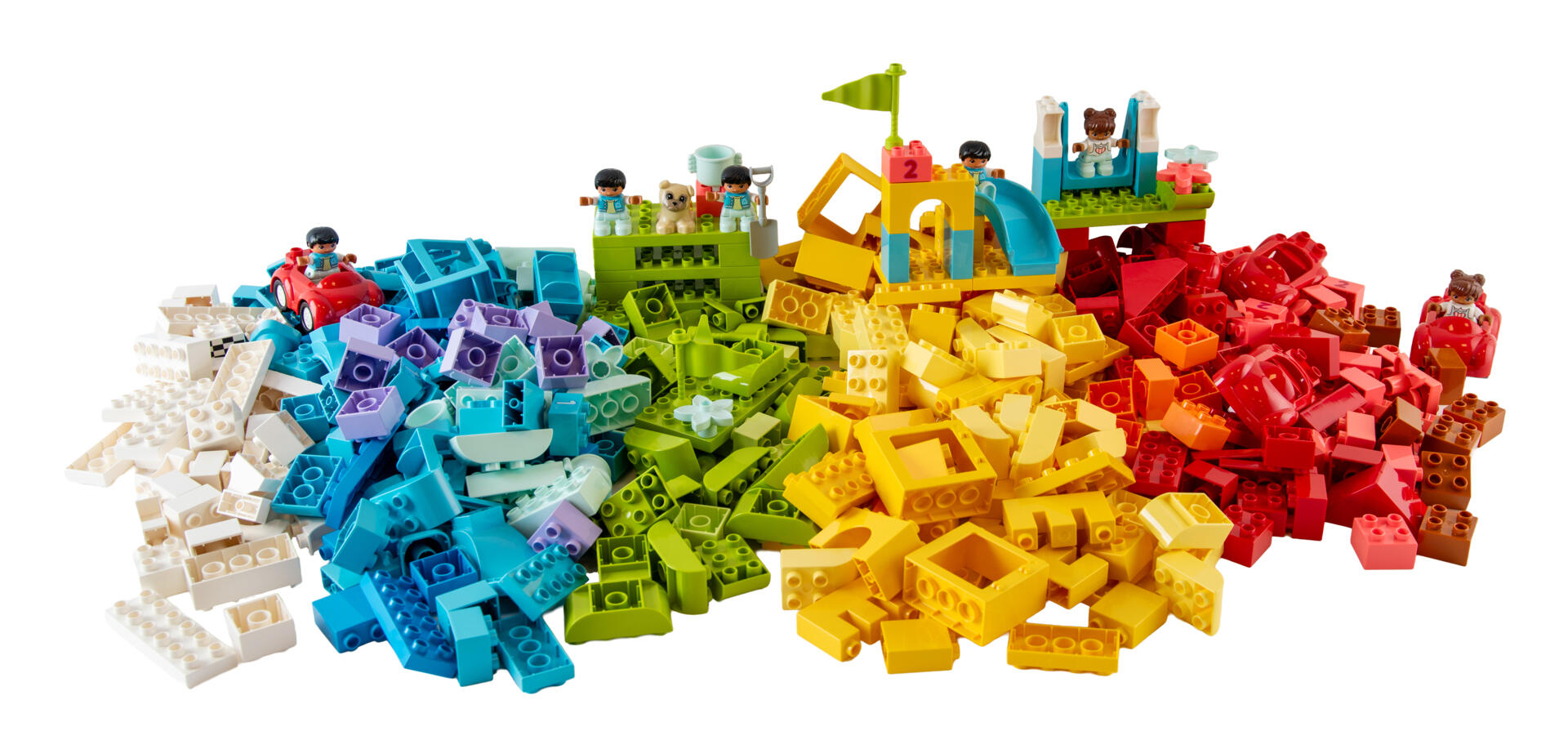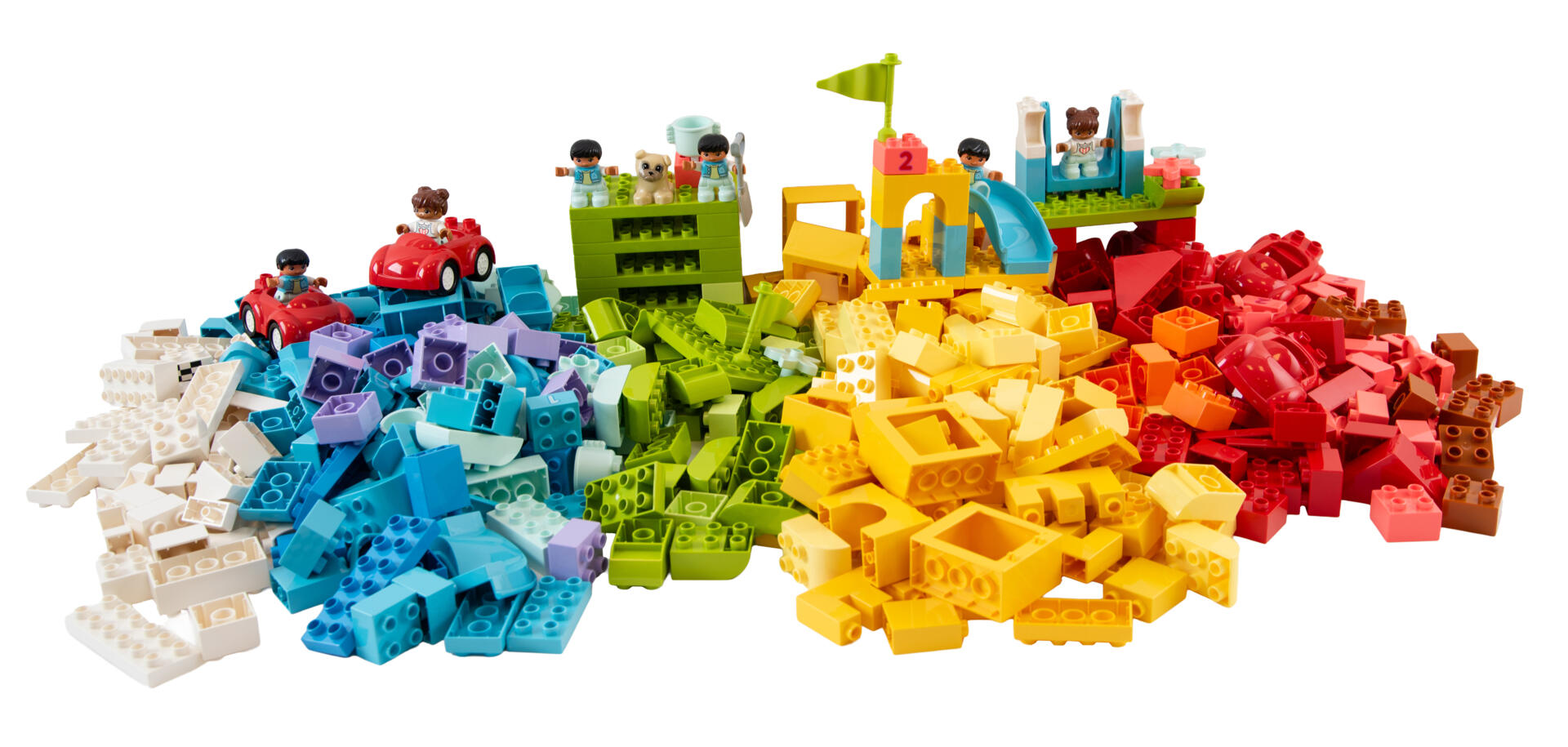 510 dele. Et stort DUPLO-sæt til at bygge mange forskellige miljøer og modeller. Indeholder forskellige farver, figurer og specialdele. Materiale: ABS. PVC-fri. Fra 18 måneder.
