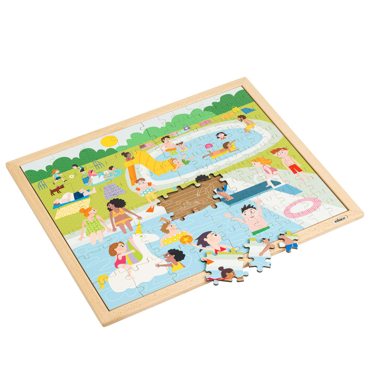 102 brikker. Rammepuslespil med store brikker i venstre side og små i højre side. Børnene kan øve sig i at samarbejde om at lægge puslespillet. Mål: 50x40 cm. Af FSC-certificeret træ. Fra 5 år.