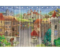 3 forhæng med flotte og spændende motiver, som skaber en fin kulisse. Med ophængshuller. Af microfiber. Justerbar højde 2,5-3 m. Bredde 1,5 m/panel, 4,5 m totalt. Maskinvask 30°C.