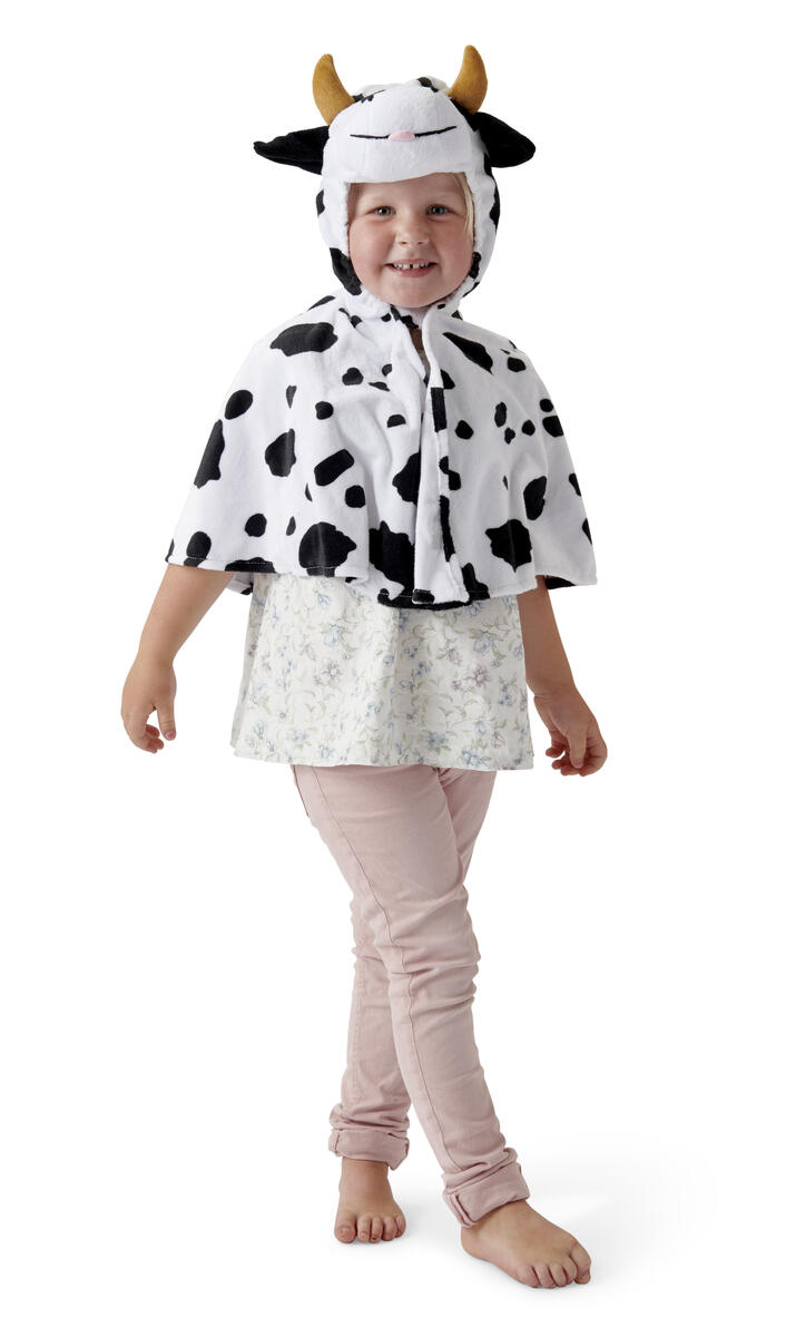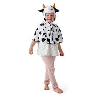 En fin og blød kappe med hætte formet som en ko. Velcro-lukning gør det nemt at tage den af og på. Af blødt polyesterplys. Vaskes ved 40°C. Alder 2-5 år.