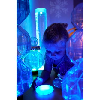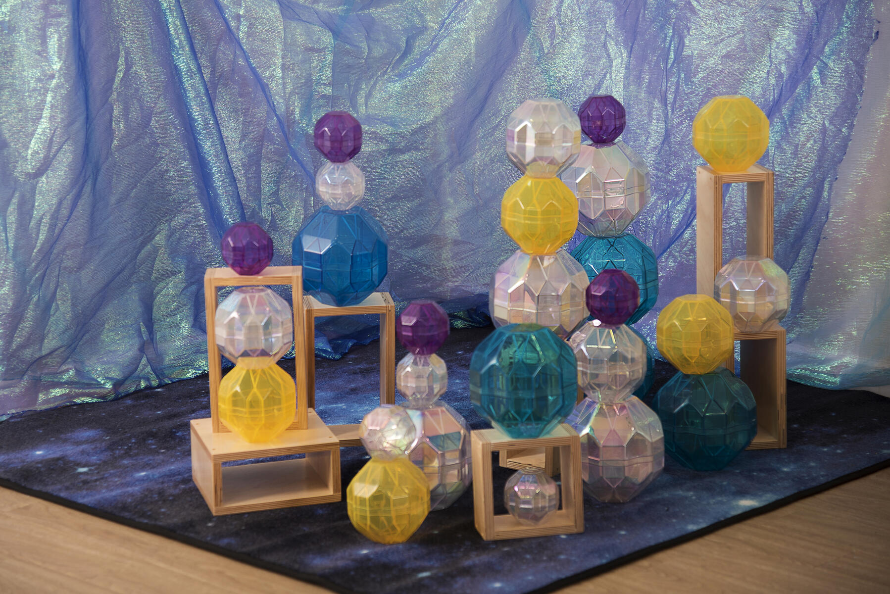 12 stk./pk. En glinsende samling varierede og magiske klodser til en række forskellige scenarier. Børnene kan rulle, stable og sortere dem eller lade sig udfordre ved at bygge glitrende tårne. Klodserne kan også bruges på et lysbord til at skabe flotte effekter. De fås i 3 størrelser: 8, 12 eller 16 cm. Fremstillet af ABS. Fra 0 år.