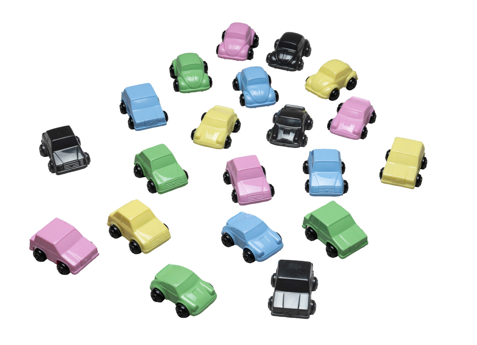 30 stk./pk. Indeholder assorterede køretøjer med dæk af støjsvag og slidstærk LDPE, som gør, at de ruller stille. Bil 9x4 cm, båd 10x5 cm. Af PE. Tåler opvaskemaskine. Fra 1 år.
