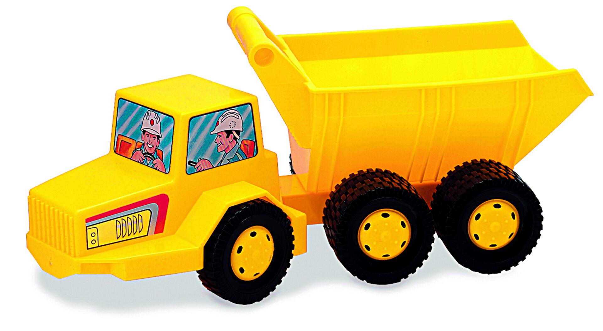 Med denne 4-gears dumper kører man sikkert både på vejen og ude i terrænet! Længde 40 cm. Af levnedsmiddelgodkendt polyetenplast. Fra 2 år.