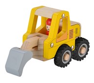 Gravemaskine med en legefigur. Bilen har gummihjul, hvilket gør legen mere støjsvag. Mål: 13x10x7 cm. Af FSC-mærket træ og gummi. PVC-fri. Fra 18 måneder.
