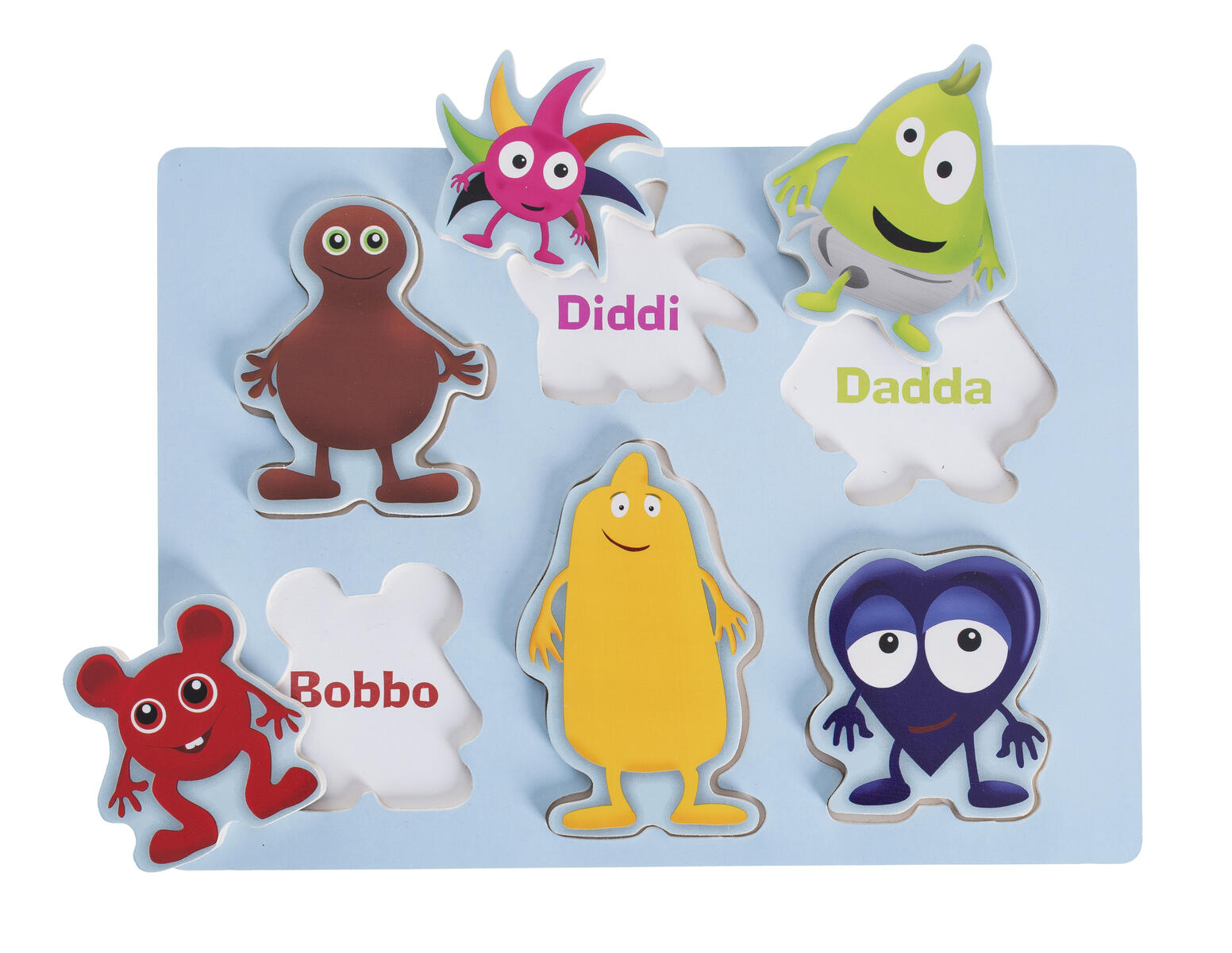 Formpuslespillet består af de 6 figurer fra Babblarna: Babba, Bibbi, Bobbo, Dadda, Diddi og Doddo. Når du løfter brikkerne, står deres navn i bunden af puslespillet. 6 brikker. Mål: 30x21 cm. 1-3 år.