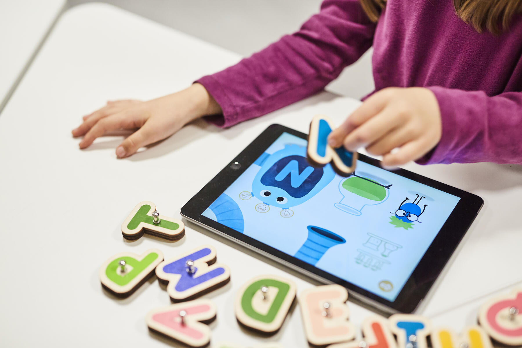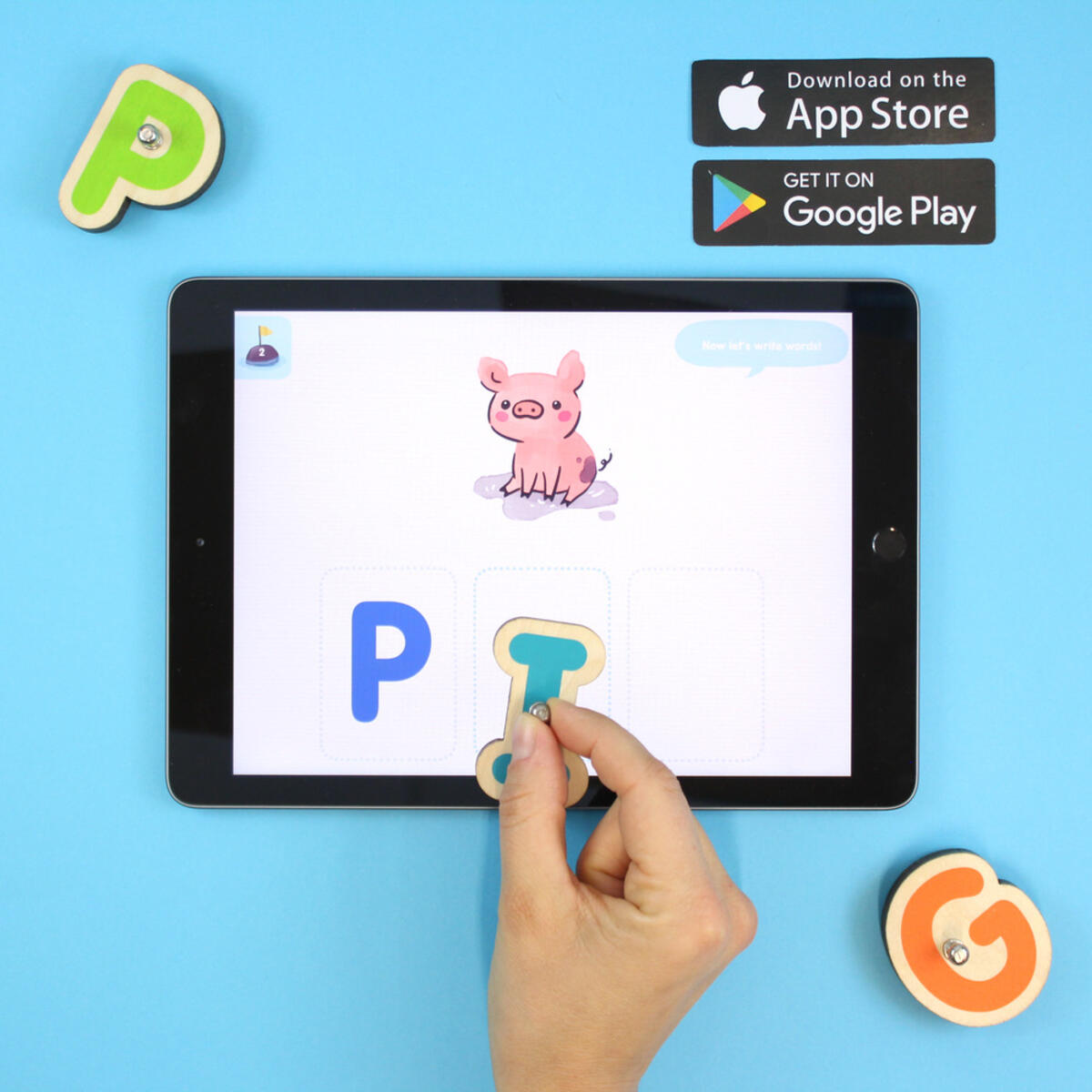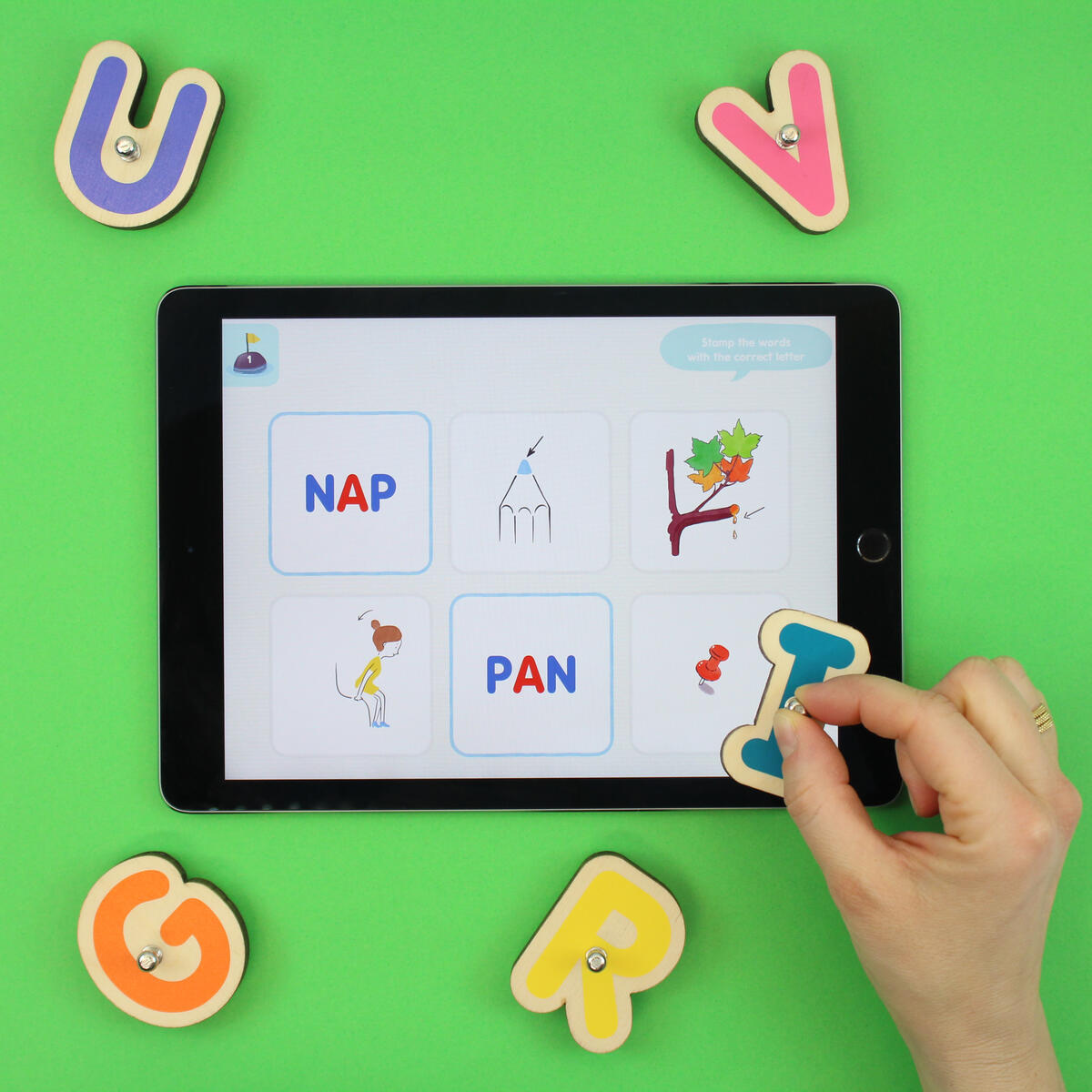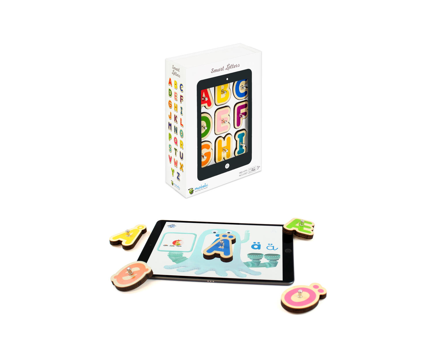 Et innovativt pædagogisk værktøj som træner læsning, genkendelse af bogstavernes former og lyde og opbygger ordforråd ved at lade børnene eksperimentere. Alt, du skal gøre, er at downloade 3 apps. Børnene interagerer med appsene ved at lægge træbogstaverne direkte på tabletten. Passer til børn 3-6 år. Fungerer både med iPad og Android. Indeholder 31 interaktive bogstaver i træ. Appsene downloades gratis (tablet medfølger ikke).