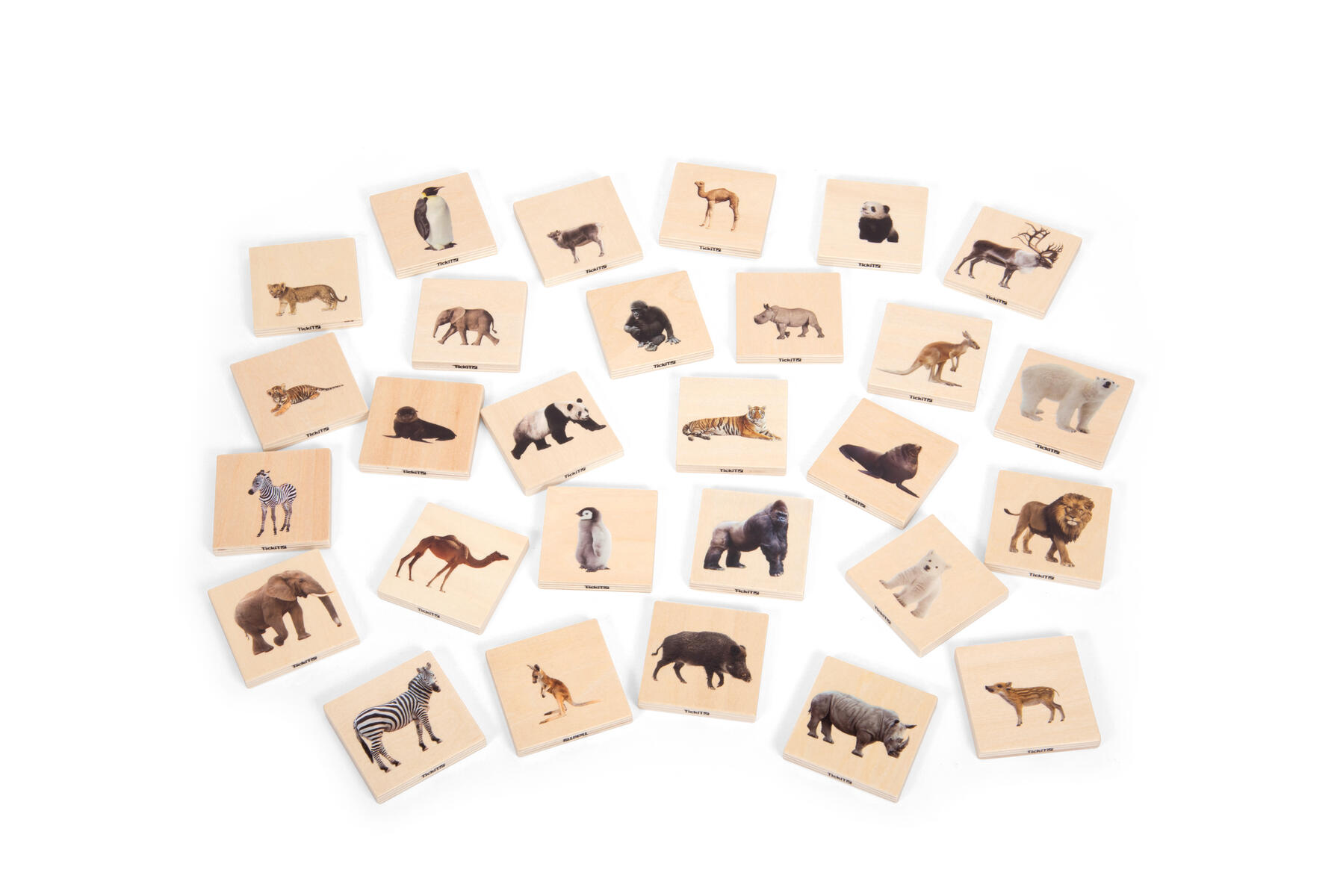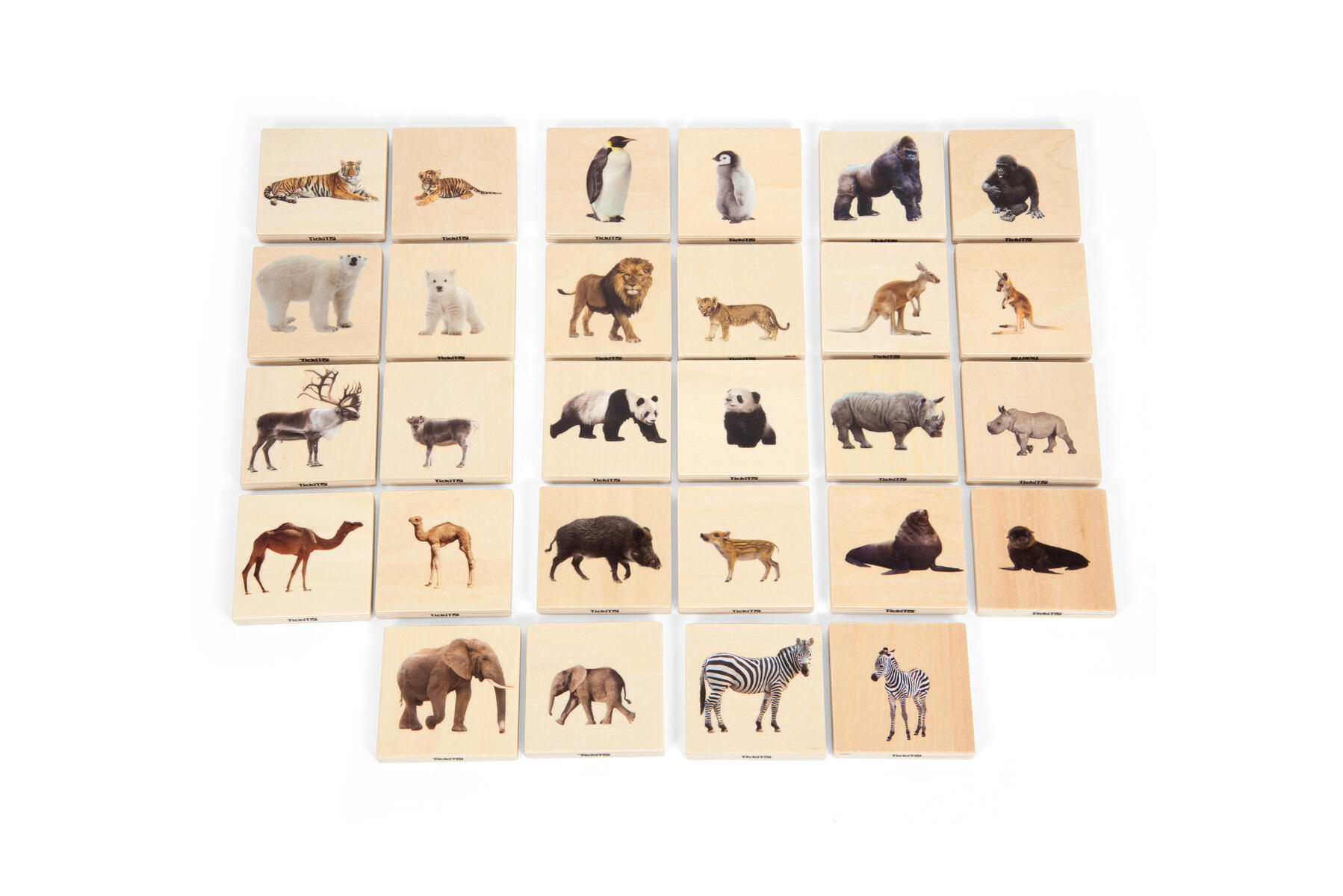 Et huskespil der går ud på at samle så mange par som muligt. Med fine fotografiske billeder af forskellige dyr. Indeholder 72 kort. For 2 eller flere spillere. Spilletid ca. 15 min. Fra 4 år.