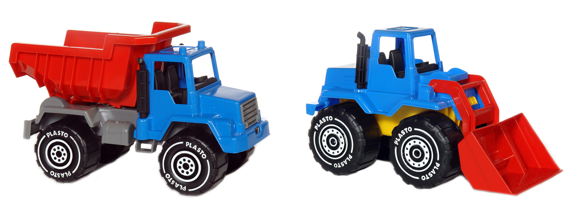 En Plasto frontlæsser er god at have når gravearbejdet med hænderne i sandet bliver alt for tungt. Mål: 30x14x18 cm. Af levnedsmiddelgodkendt polypropen og polyeten. Fra 1 år. Samt en robust lastbil med tippebar anhænger. Mål: 30x14x18 cm. Af levnedsmiddelgodkendt polypropen og polyeten. Fra 1 år
