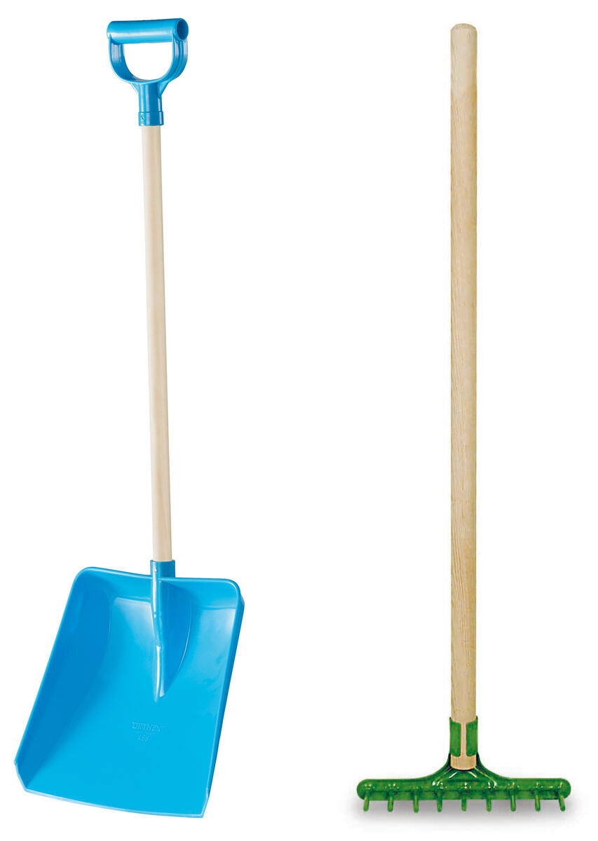 Titel: Haveredskaber - Juniorrive og sneskovl til børn