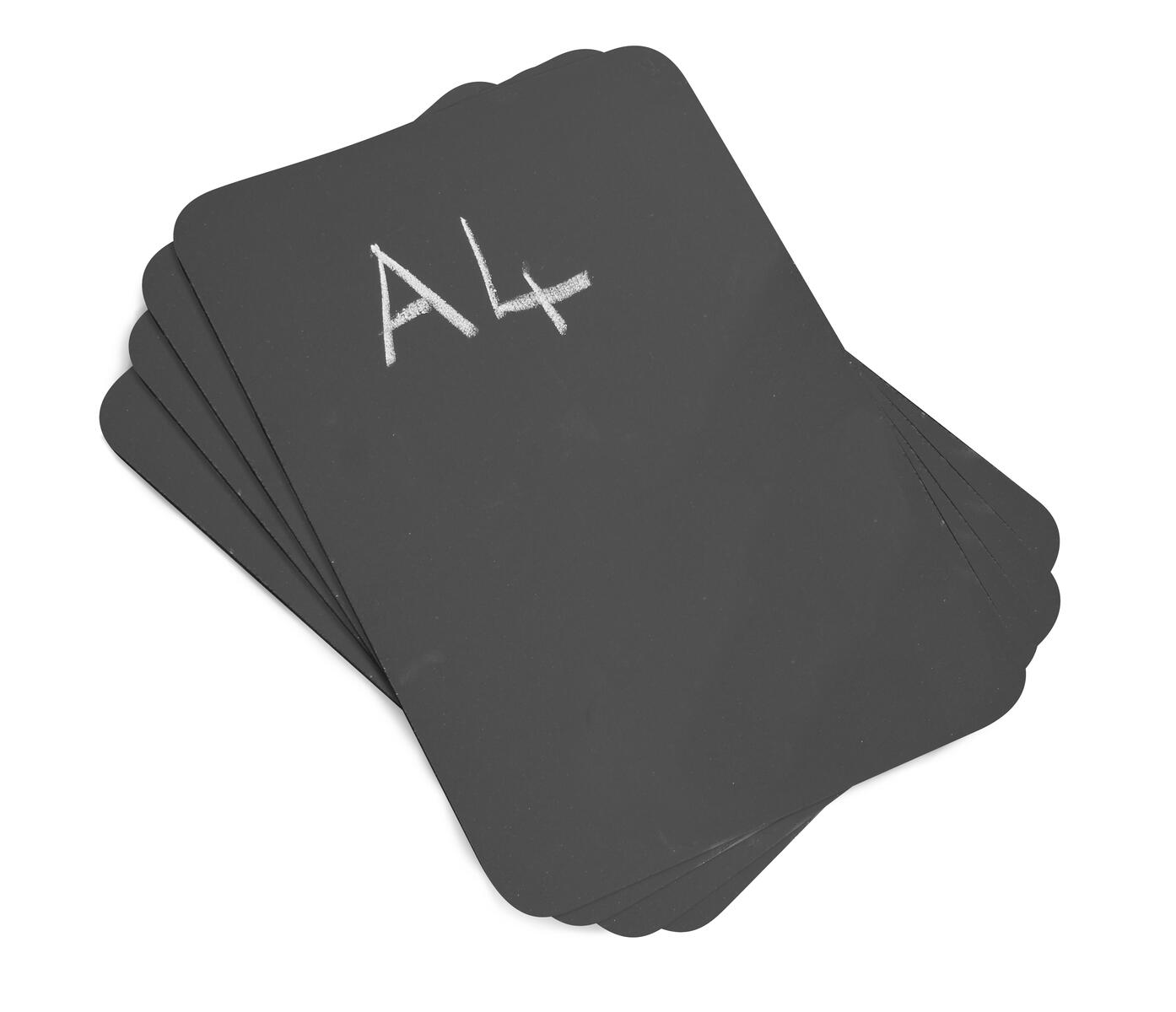 4 stk./pk. Tavler i A4-størrelse, der er nemme at tage med sig eller hænge udenfor. De forborede huller gør det nemt at hænge dem op. Snor til ophæng medfølger ikke. Kridt sælges separat. Mål: H30xB21 cm. Fra 3 år.