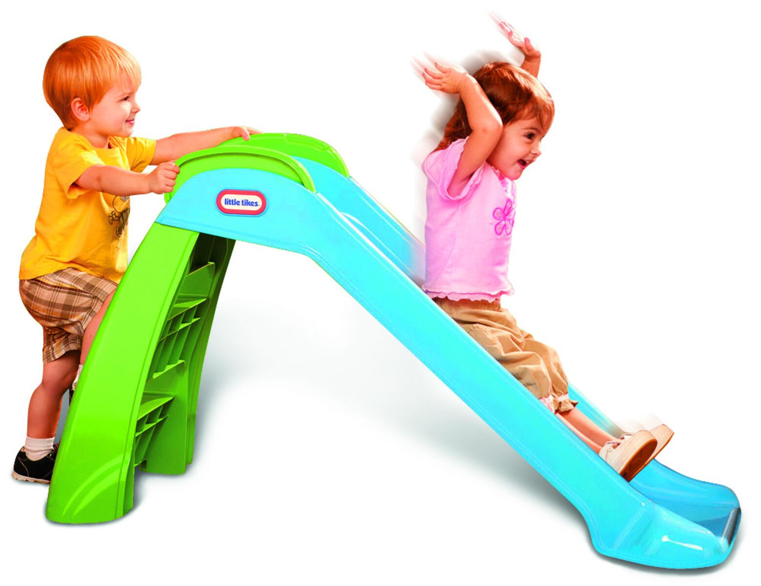 En rutsjebane for de mindre børn med høje sider og runde kanter. Samles uden brug af værktøj. Polyetylenplast. Mål: L99cm H58 cm. Til indendørs og udendørs brug. Fra 2-4 år.