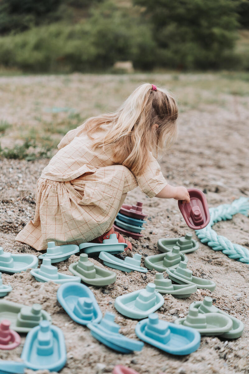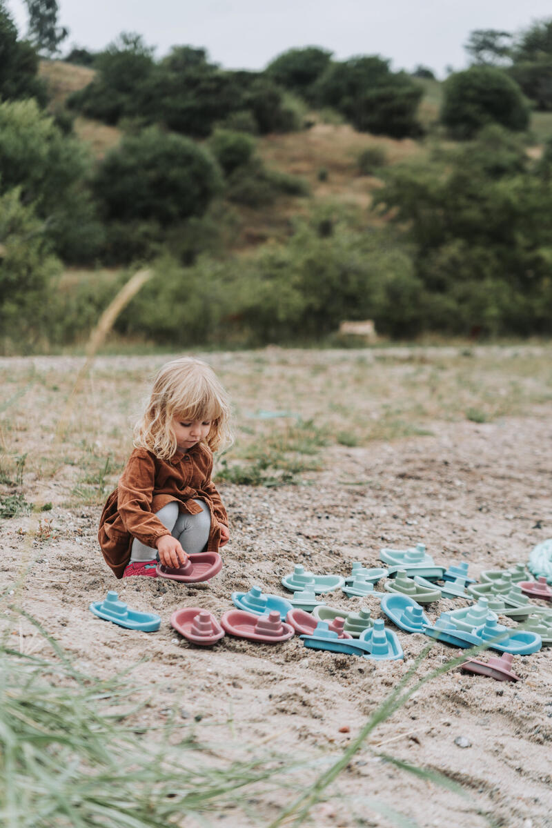 5 dele. Indeholder rive, spand, si, båd og skovl. Fremstillet af genbrugt restmateriale fra fiskeredskaber såsom net, vod og reb. Tåler maskinopvask. Af PP. Fra 2 år.