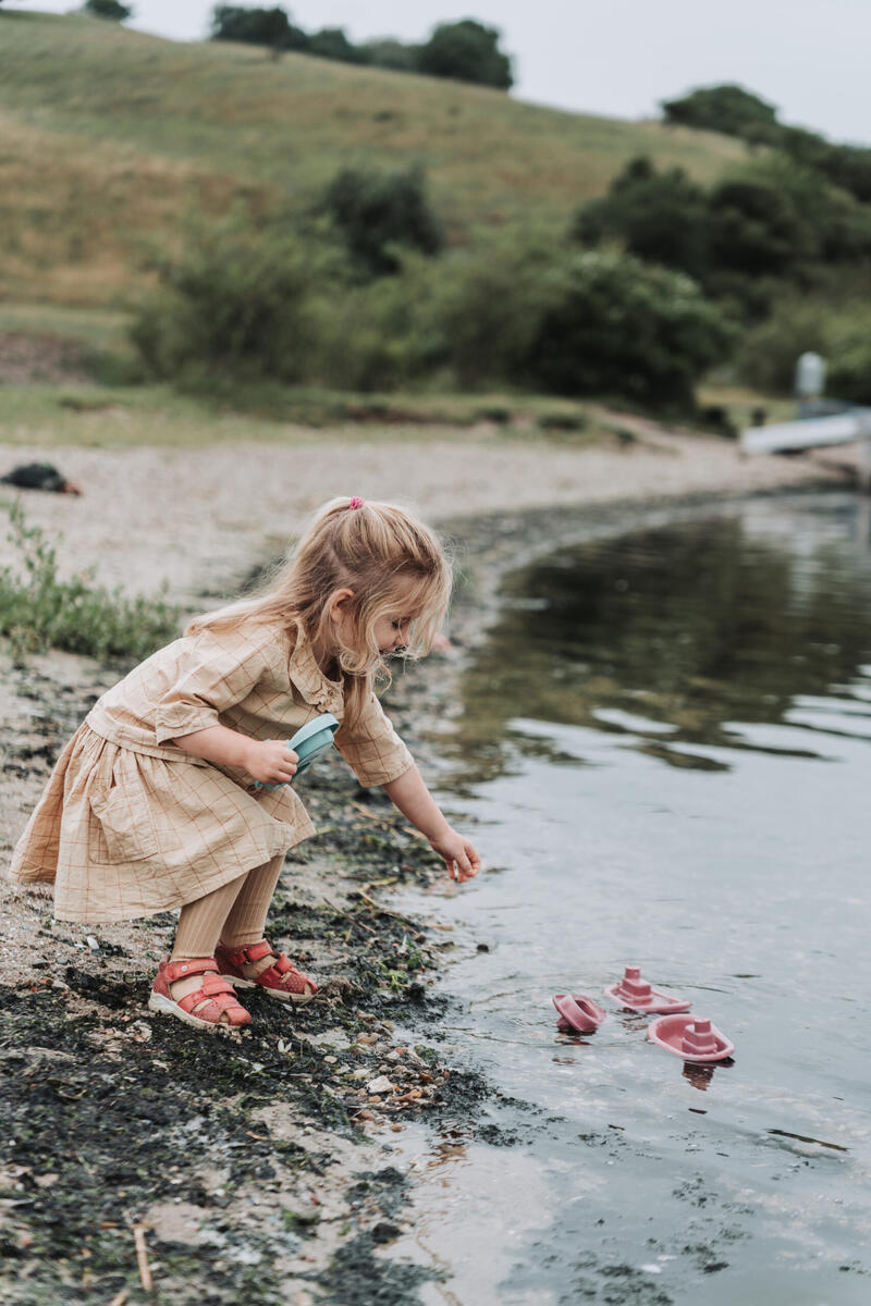 Et holdbart sand- og vandlegesæt med sandmølle, skovl og sandform. Træner barnets finmotorik og indbyder til leg i naturen med sand og vand. Højde 44 cm. Fremstillet i genvundet restmateriale fra maritime fiskeredskaber som net, trawl og reb. Tåler opvaskemaskine. Af PP. Fra 2 år.