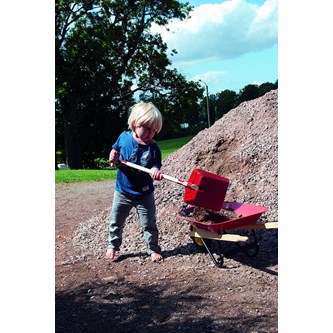 En stabil trillebør til de yngre børn. Klarer vægt op til 50 kg. Af polypropylenplast med gummihjul. Mål: 68x33,5x33 cm. Svanemærket, licensnummer 50950001. Fra 2 år.