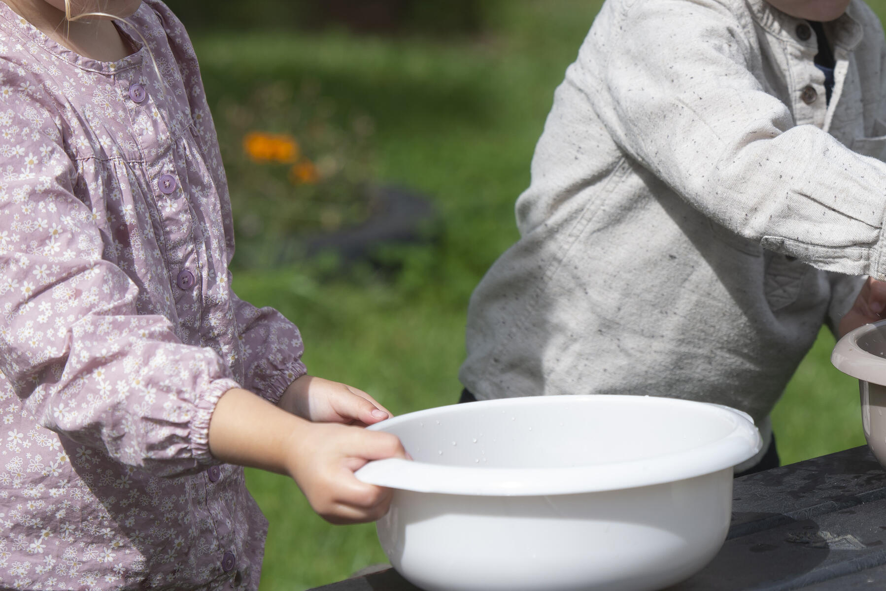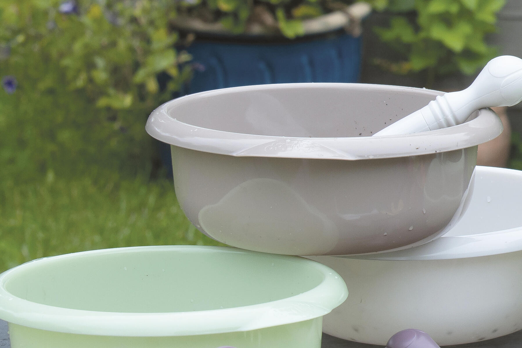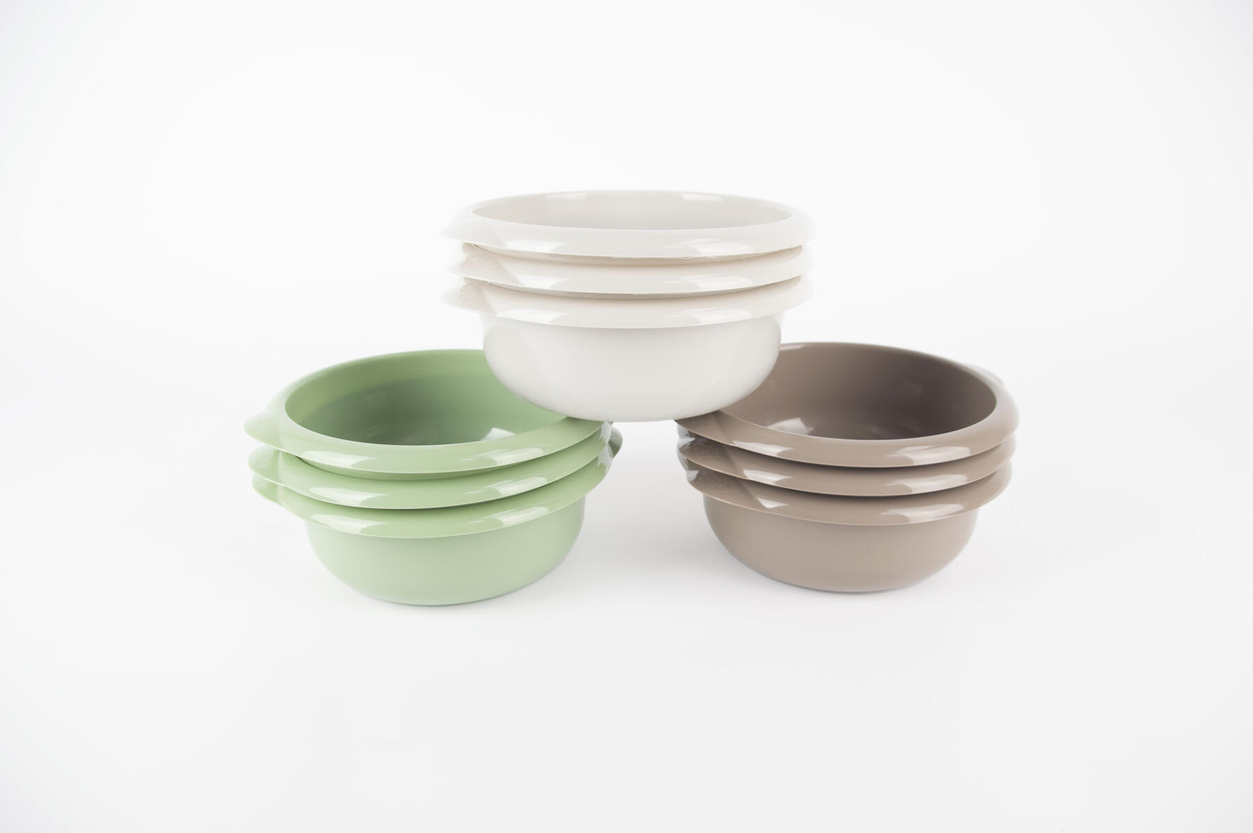 Skåle, som børn kan bruge, når de leger med sand og vand. Farverne kan variere. Af HDPE. Svanemærket, licensnummer 50950001. Fra 2 år.