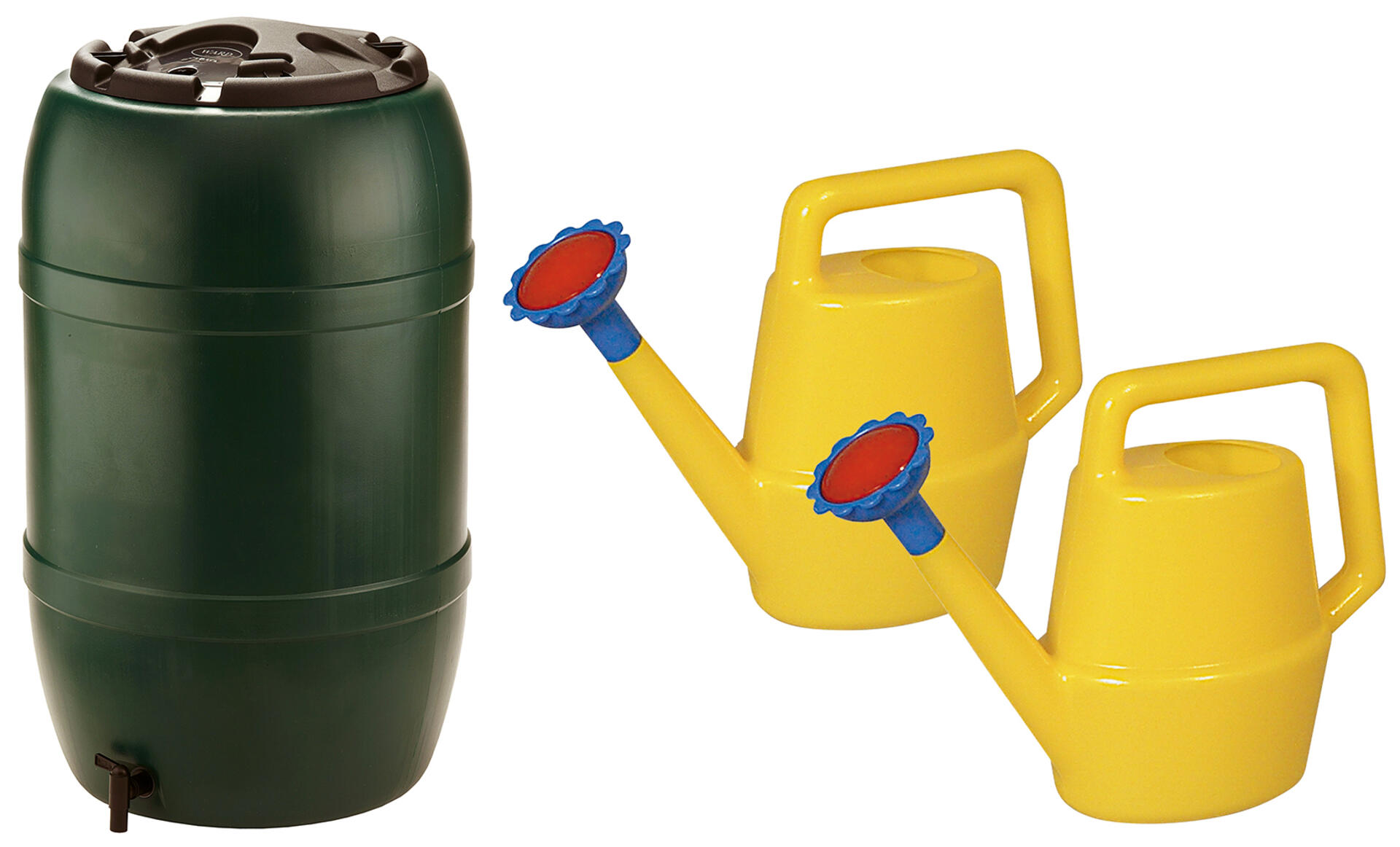 2 vandkander på 1 liter i polyetenplast. 1 vandtønde med hane. 1 miljøvenlig tønde med hane, til at opsamle regnvandet i børnehaven. Vandtønnen leveres med en børnesikret lås og hane. Rummer 210 L. Vandtønde mål: 97 cm, Ø: 57 cm.