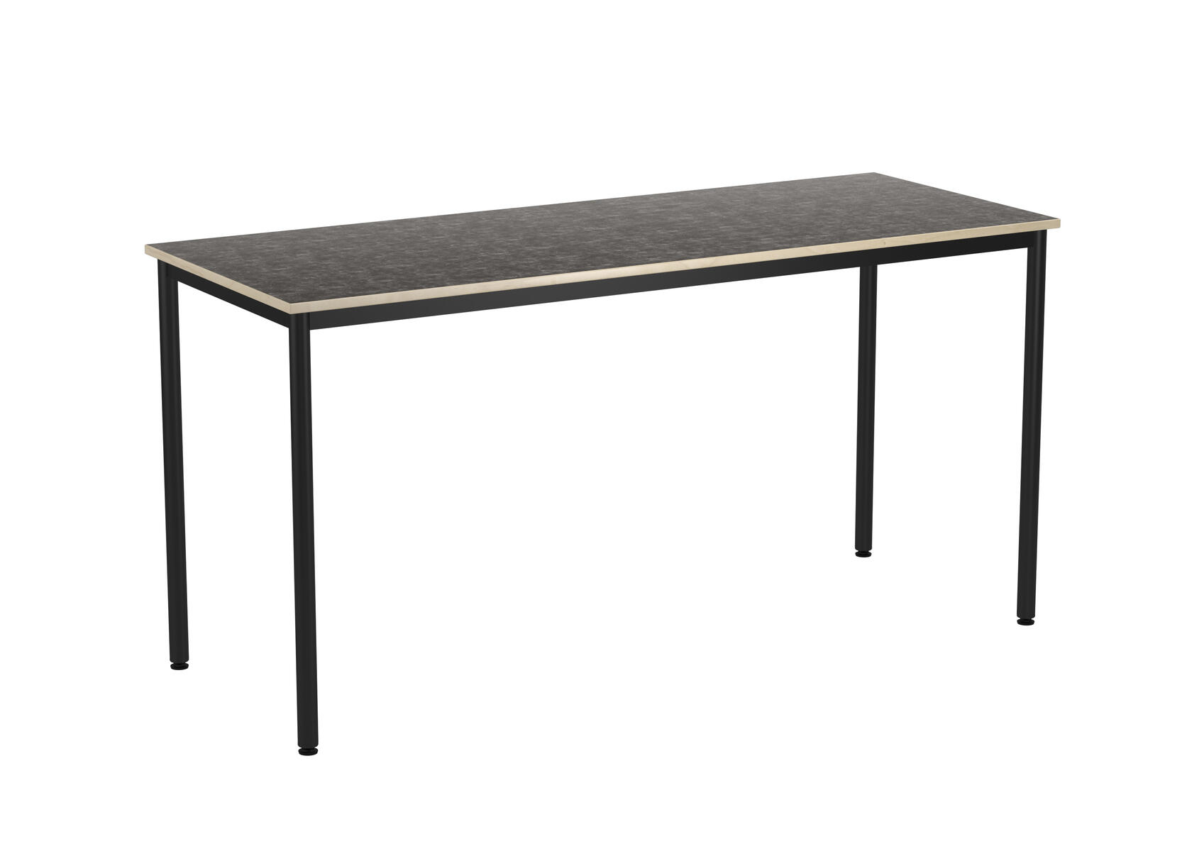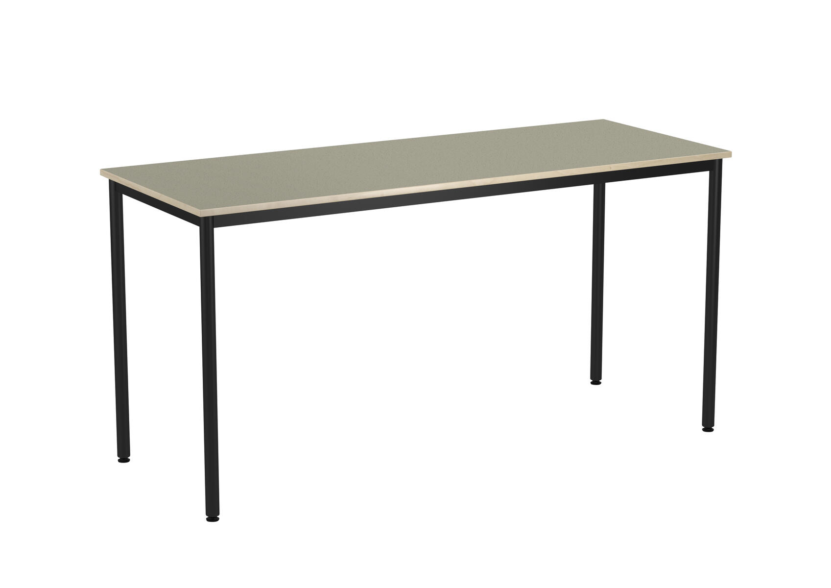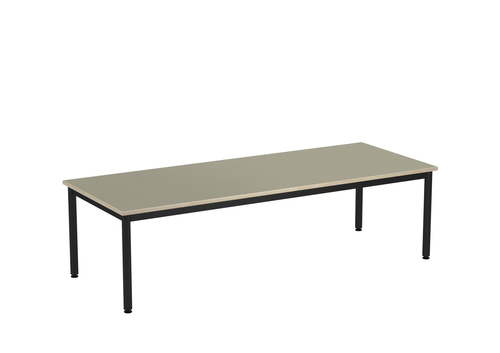 Bordplade med lyddæmpende overflade i linoleum. Justerbare stilleskruer sikrer, at bordet står stabilt selv på ujævne overflader. Understel i sort RAL 9005.