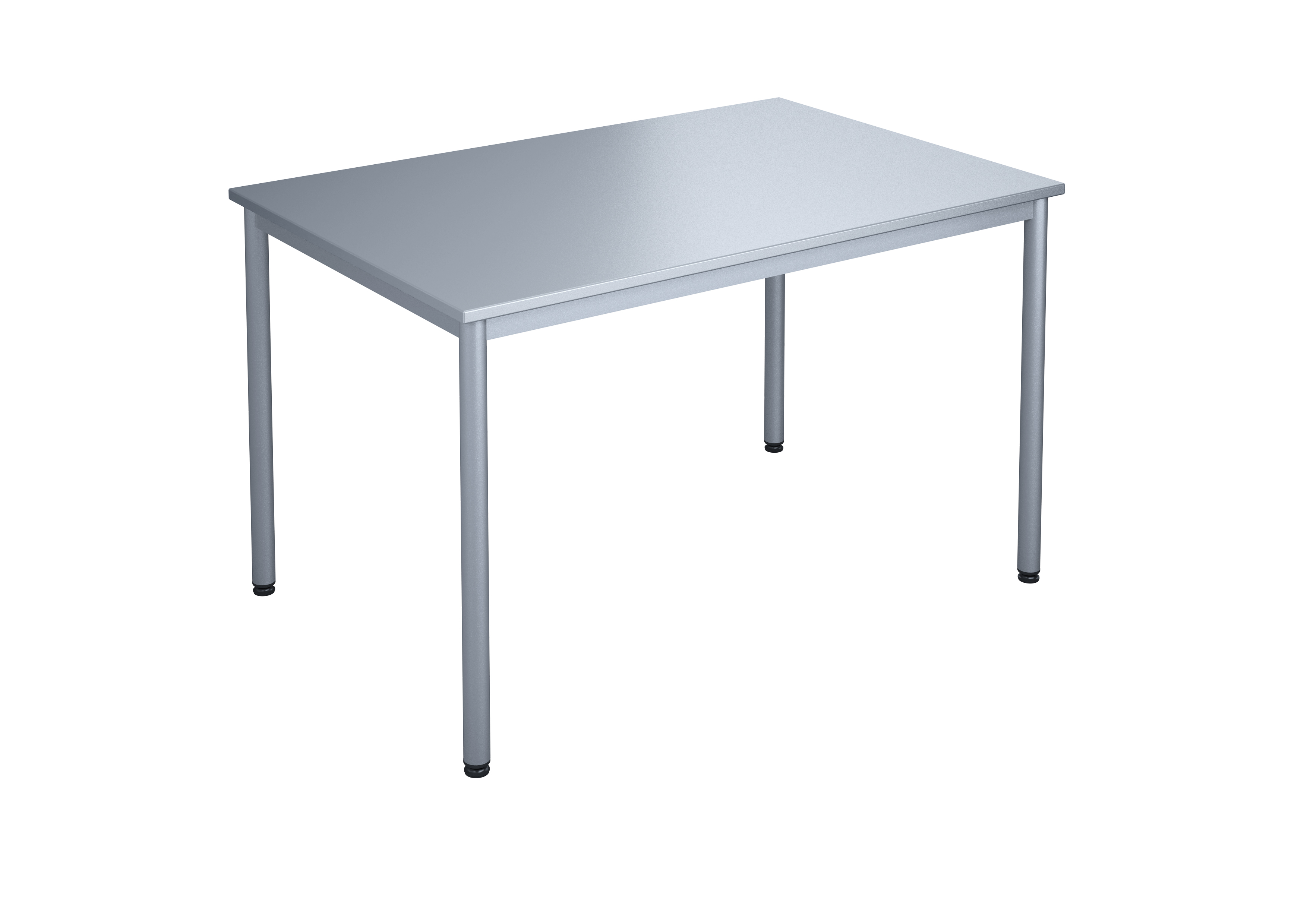 Bordplade i 20 mm krydsfinér med højtrykslaminat. Vælg mellem 2 ben med stilleskruer og 2 ben med hjul, eller kun ben med plastprop. Fuldsvejset stel 9006. Mål: 120x60xH72 cm.