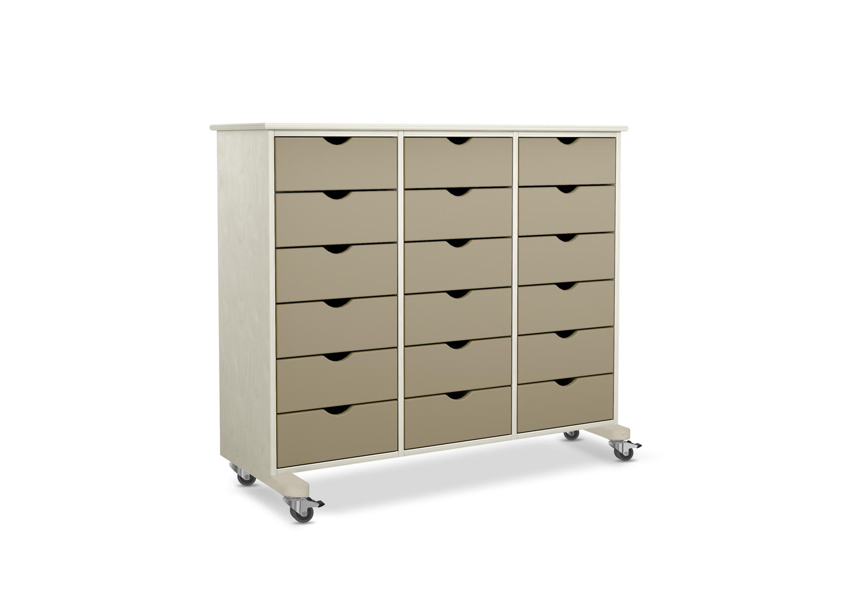 Rabo kommode 18 store skuffer m/hjul hvidpigmenteret