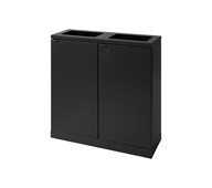 Mobilt affaldssortering med kabinet i klarlakeret MDF. Fire hjul hvoraf to er låsbare (foran). Soft close med magnet i hver dør. Udtræk til affaldsposer og gummimåtte medfølger. Vælg farven på dørene. Metaldør (3 mm tykkelse). Symboler waste og bottles/cans. Egnede affaldssække 85-125 liter.