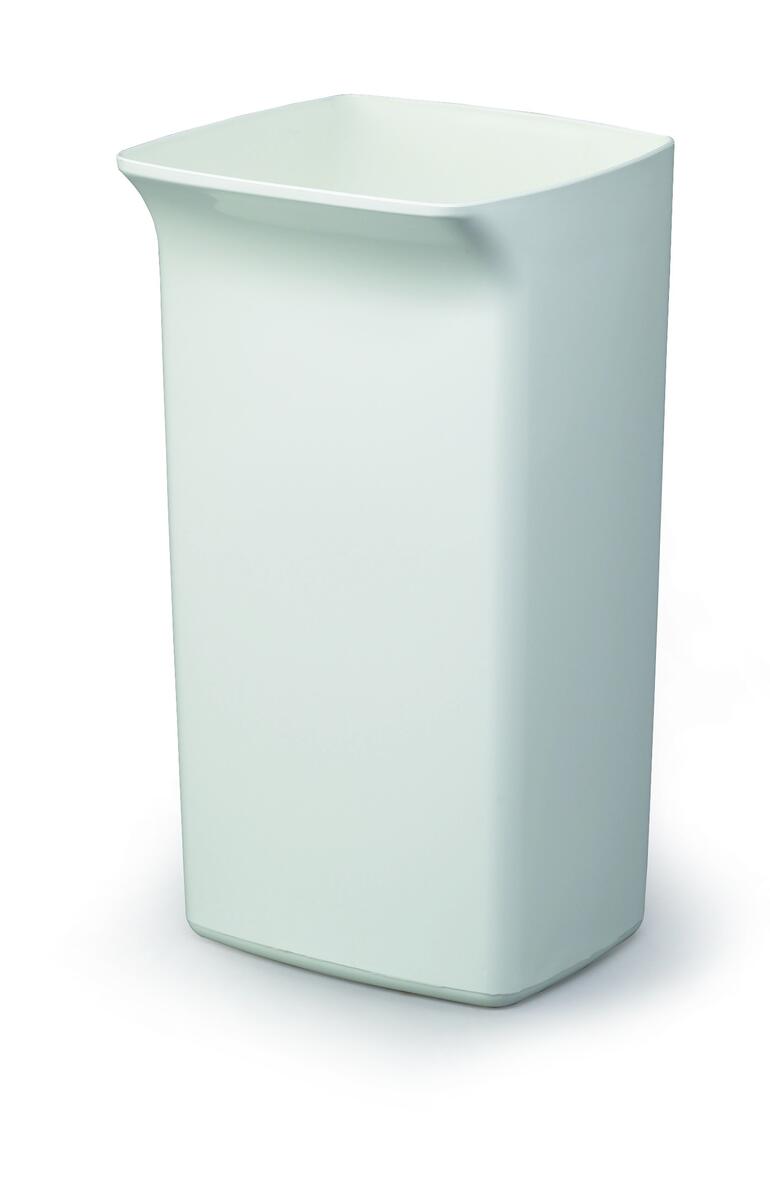 40 l affaldsspand i hvid polyetenplast. Mål: 32x36x59 cm. Rengøres med mildt rengøringsmiddel. Låg i grøn eller hvid (29303) og dobbeltvogn til 2 spande (29301) købes som tilbehør.