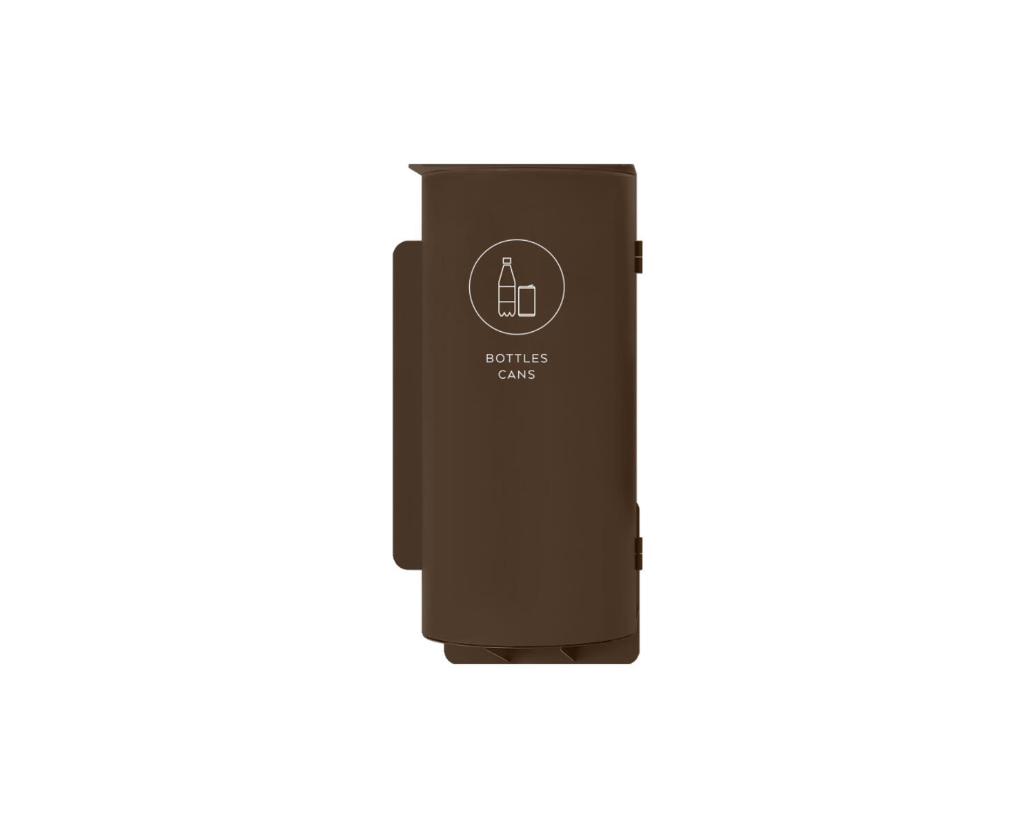 Affaldssortering i lakeret metal. Låg i aluminium. Soft close, når de åbnes helt. Stor beholder rummer 63 liter og lille beholder rummer 43 liter. Vælg farve og symbol.