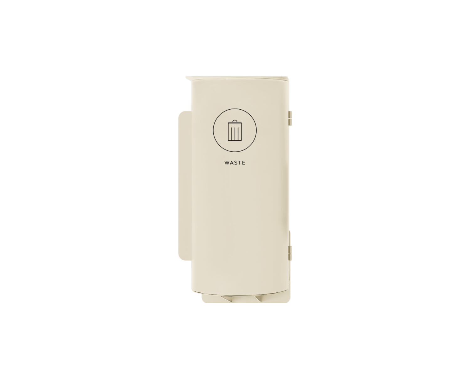 Affaldsspand til affaldssortering i lakeret metal. Hvidt låg med åbning i folieret MDF og gråt silketryk. Der er flere forskellige åbninger og symboler at vælge imellem. Skab jeres egne kombinationer og unikke udtryk ved at sammensætte flere spande.