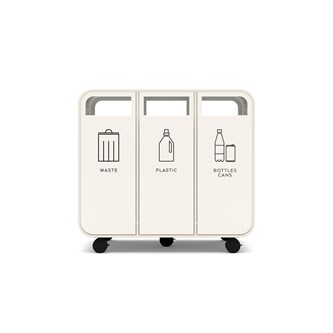 Cloud 3 affaldssortering på hjul perlehvid laminat - Restaffald, Plast og Pant