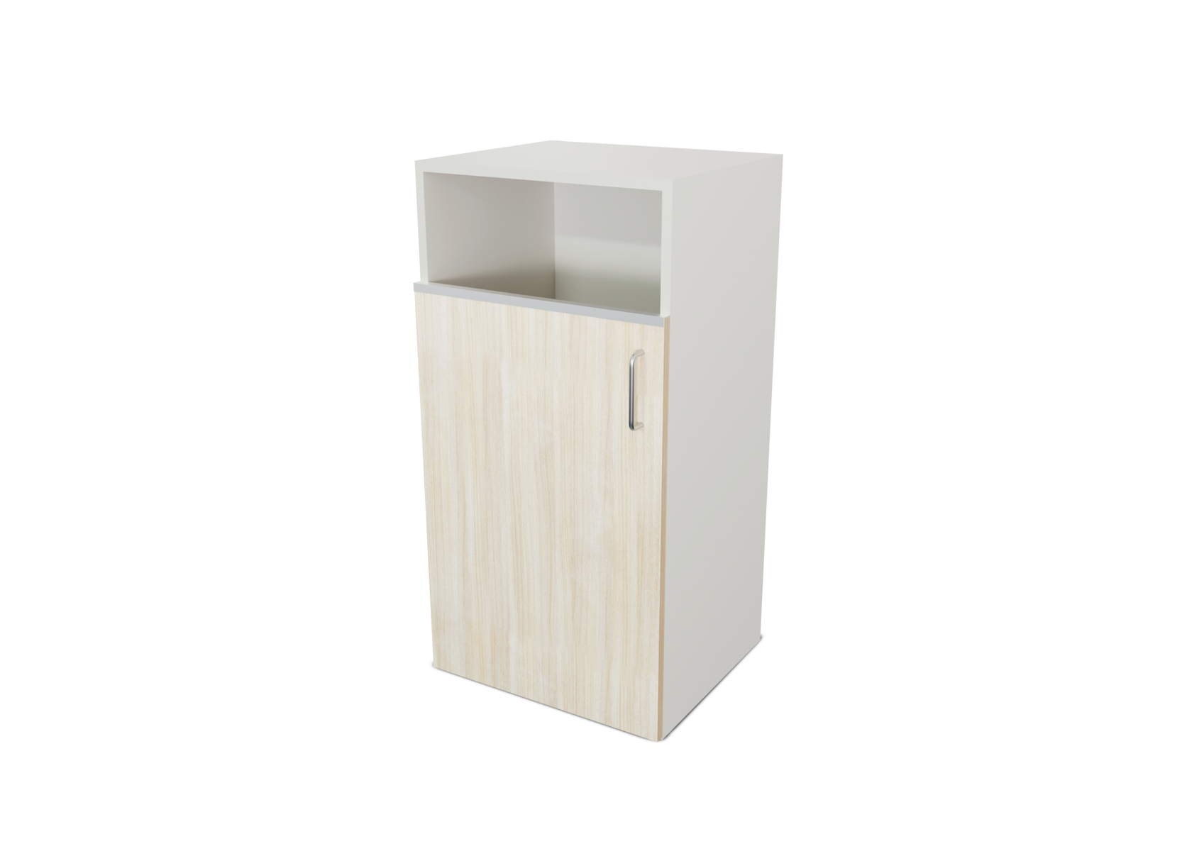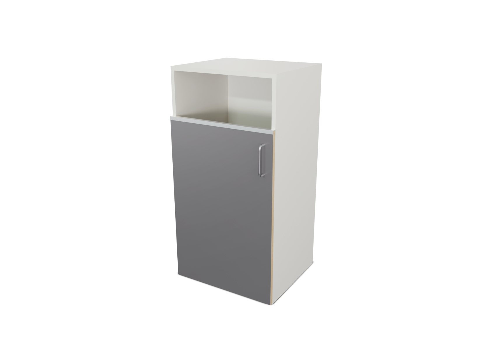 Affaldsmodul i laminat med dør og greb. Topplade med hul til affald. Hullet har en diameter på 20 cm. Vælg mellem laminat og højtrykslaminat på døren.