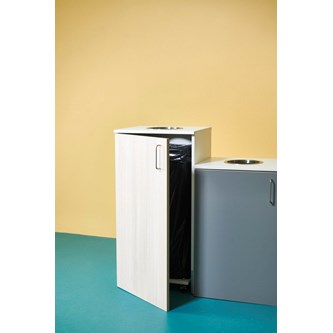 Affaldsmodul i laminat med dør og greb. 22 cm åbning foran i modulet til affald. Vælg mellem laminat og højtrykslaminat på døren.