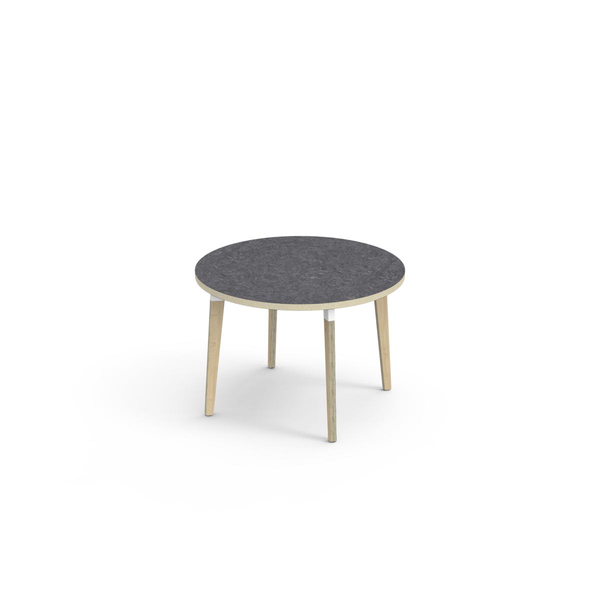 Bordpladen er belagt med akustisk linoleum, hvilket skaber en blød og behagelig overflade, der samtidig forbedrer lydmiljøet. Med en hjørneradius på 40 mm har bordet et moderne og stilrent udtryk. De rektangulære ben er fremstillet af klarlakeret birkefiner og monteret i robuste sorte manchetter, hvilket sikrer både stabilitet og holdbarhed. Benene er let vinklet ud mod bordpladens hjørner. Bordet er nemt at samle – du skal blot fastgøre metaldelene i de forberedte punkter på bordpladen.