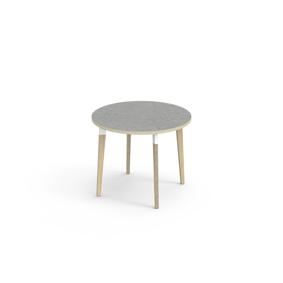 Bordpladen er lyddæmpende og belagt med højtrykslaminat, hvilket giver en holdbar og slidstærk overflade. Med en hjørneradius på 40 mm har bordet et moderne og stilrent design. De rektangulære ben er lavet af klarlakeret birkefiner og monteret i robuste hvide manchetter, som sikrer både stabilitet og holdbarhed. Benene er let vinklet ud mod hjørnerne af bordpladen, hvilket giver et elegant udtryk. Samlingen er nem og problemfri – du skal blot fastgøre metaldelene i de forberedte monteringspunkter på bordpladen.