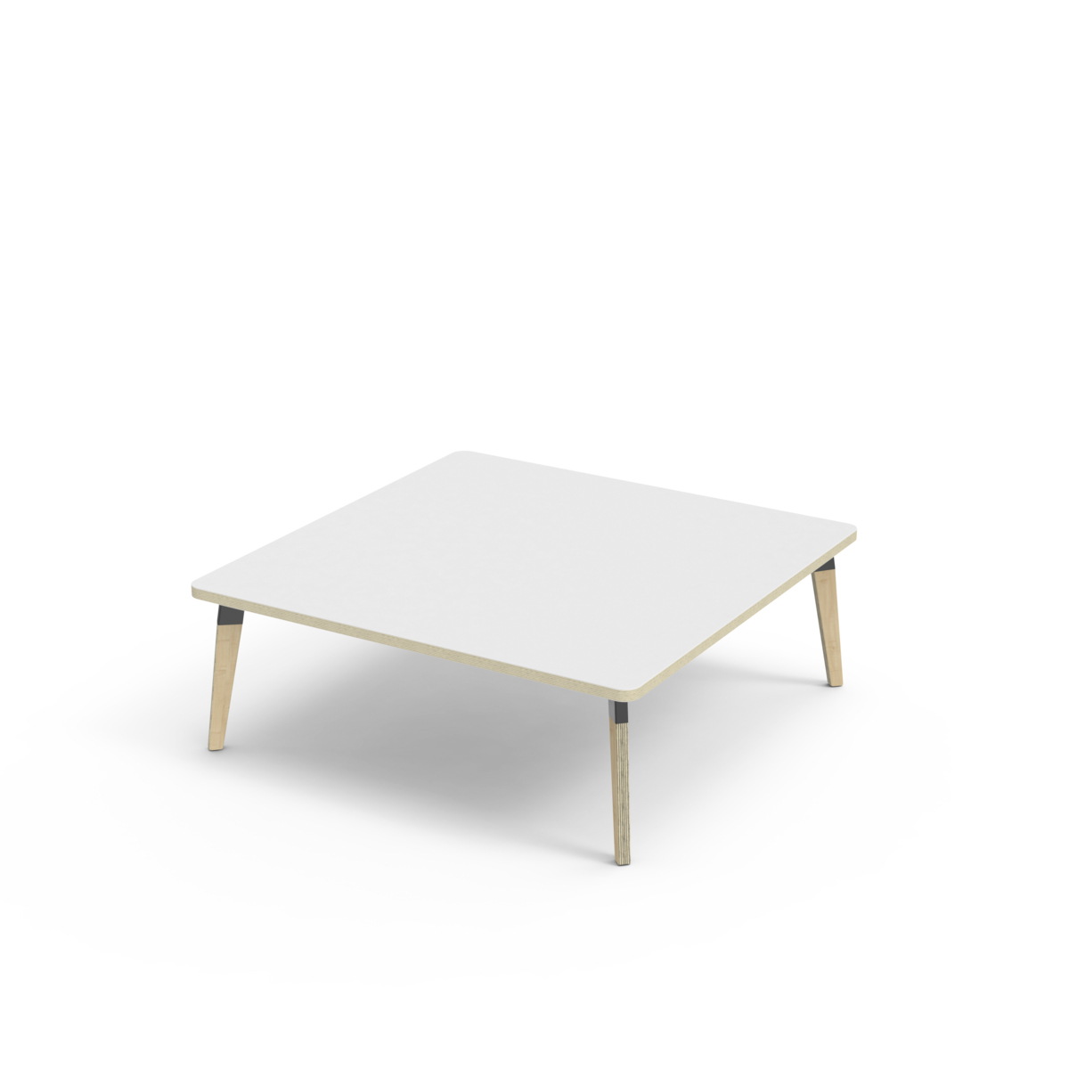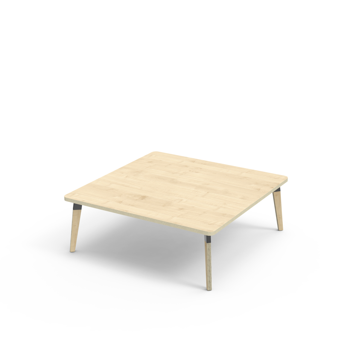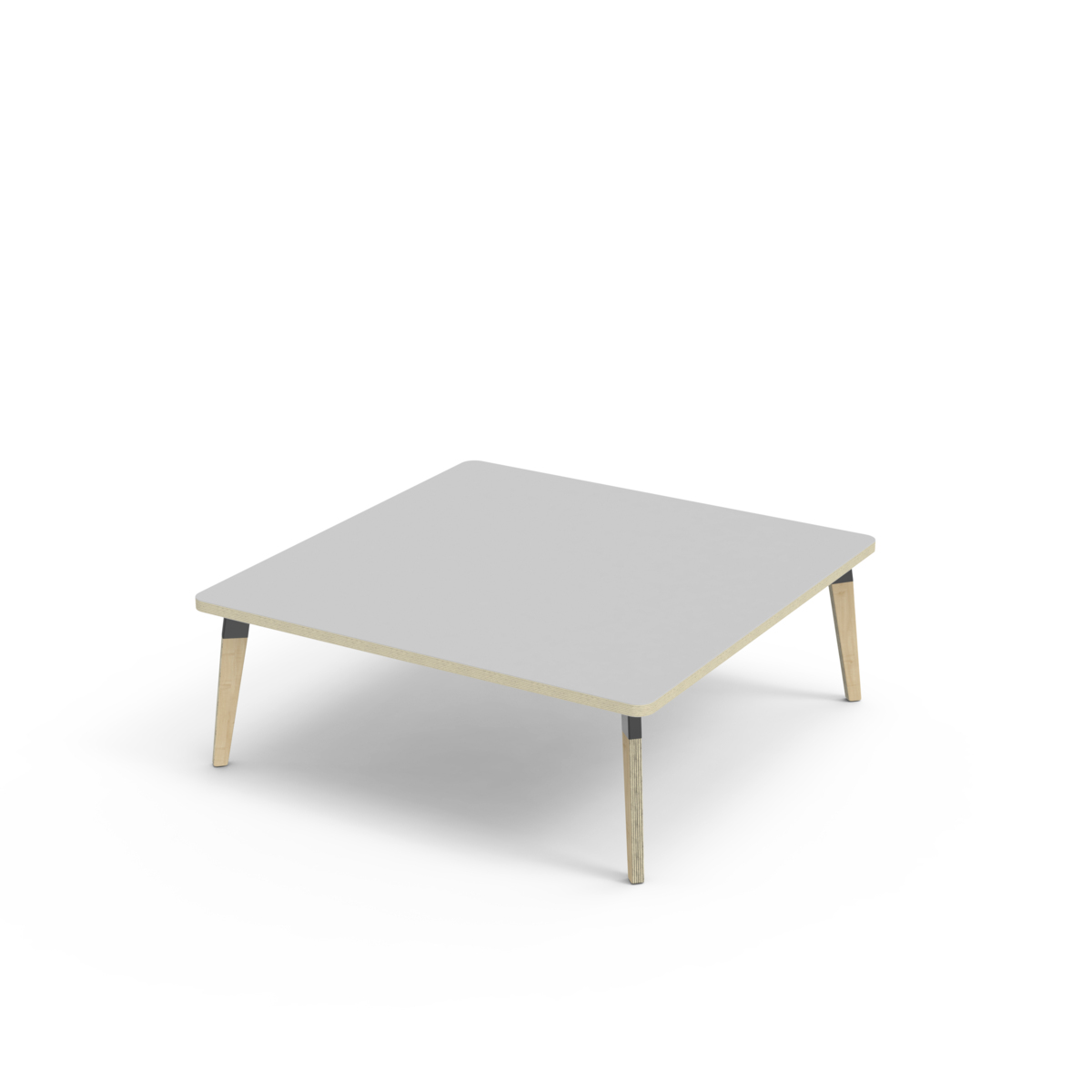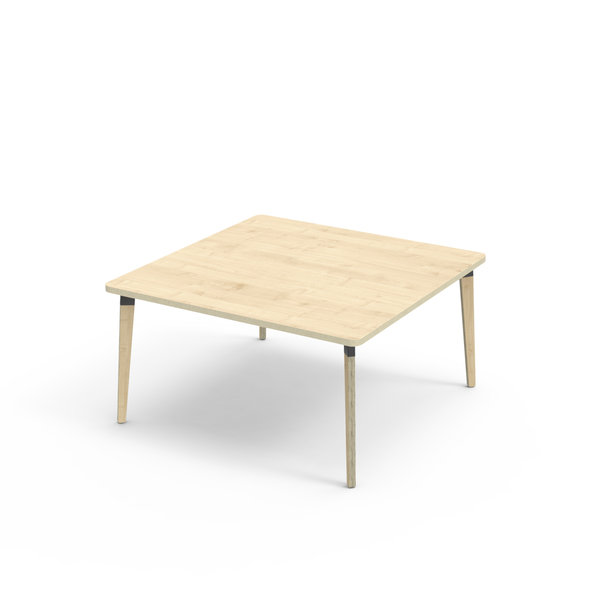 Bordpladen er lyddæmpende og belagt med højtrykslaminat, hvilket giver en holdbar og slidstærk overflade. Med en hjørneradius på 40 mm har bordet et moderne og stilrent design. De rektangulære ben er lavet af klarlakeret birkefiner og monteret i robuste sorte manchetter, som sikrer både stabilitet og holdbarhed. Benene er let vinklet ud mod hjørnerne af bordpladen, hvilket giver et elegant udtryk. Samlingen er nem og problemfri – du skal blot fastgøre metaldelene i de forberedte monteringspunkter på bordpladen.