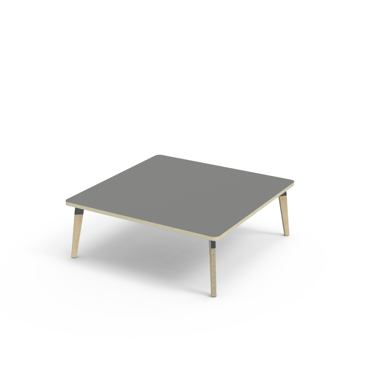 Bordpladen er belagt med akustisk linoleum, hvilket skaber en blød og behagelig overflade, der samtidig forbedrer lydmiljøet. Med en hjørneradius på 40 mm har bordet et moderne og stilrent udtryk. De rektangulære ben er fremstillet af klarlakeret birkefiner og monteret i robuste sorte manchetter, hvilket sikrer både stabilitet og holdbarhed. Benene er let vinklet ud mod bordpladens hjørner. Bordet er nemt at samle – du skal blot fastgøre metaldelene i de forberedte punkter på bordpladen.