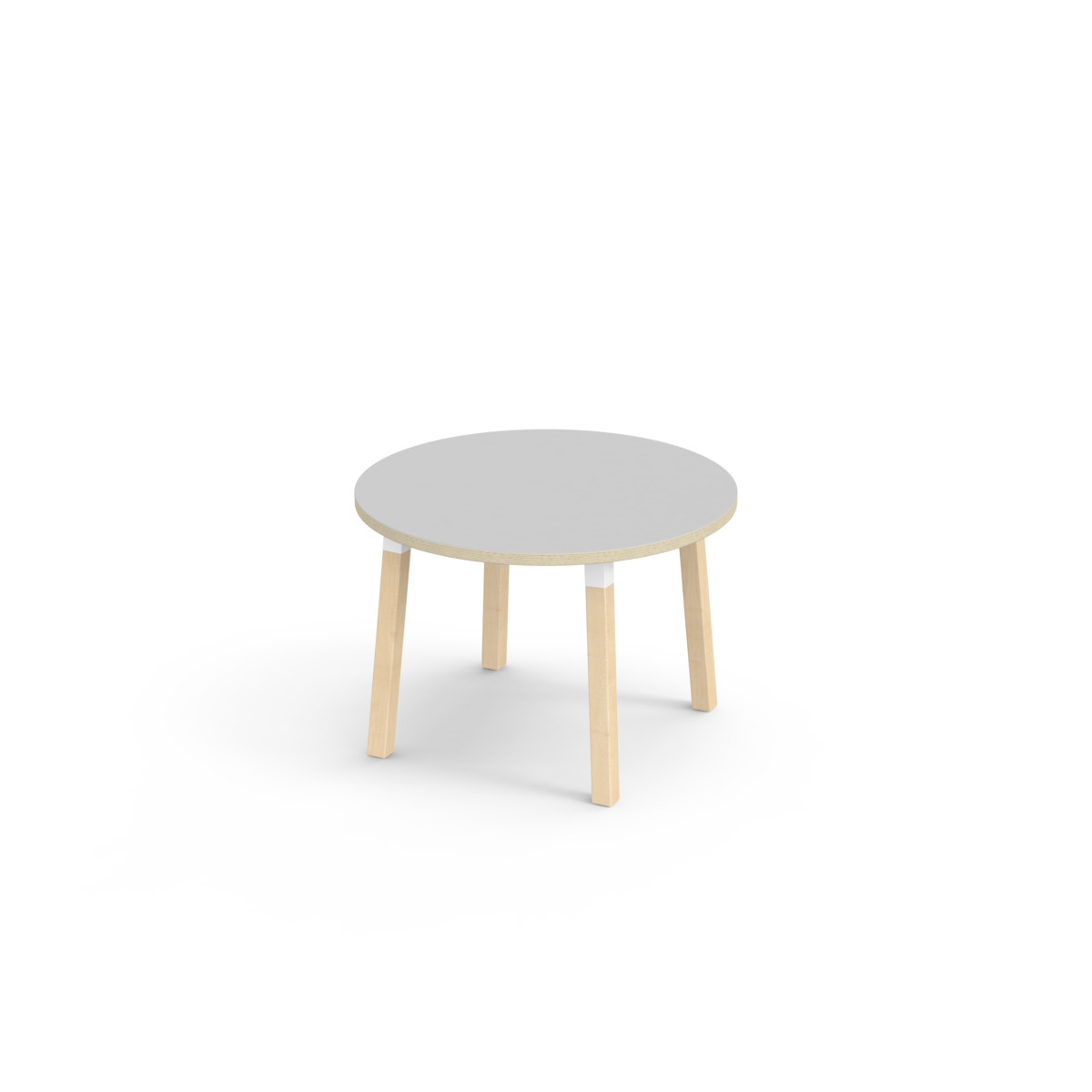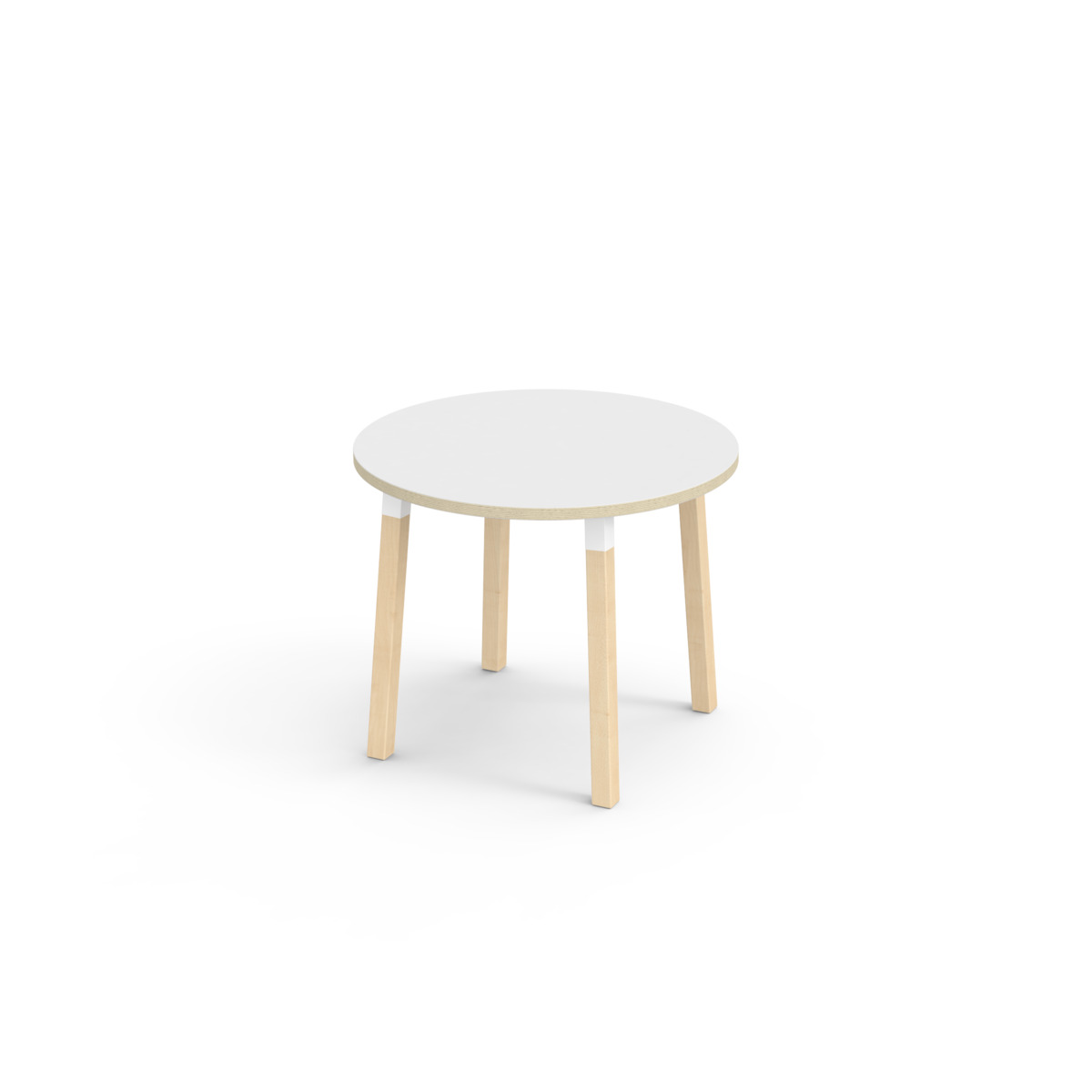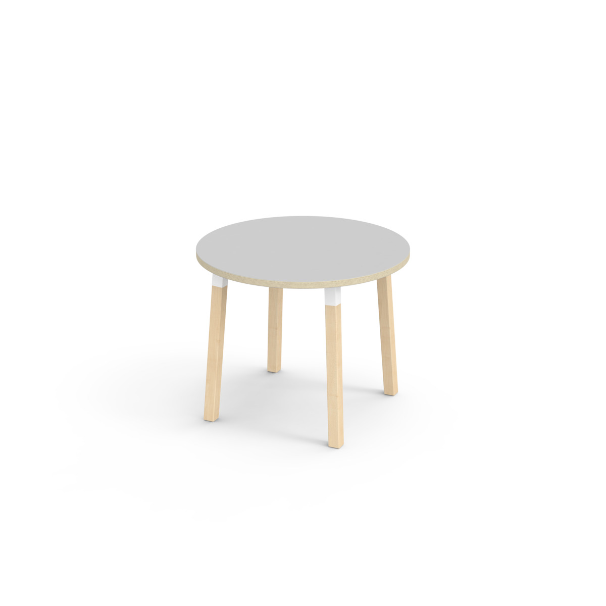Bordplade belagt med laminat. Med en hjørneradius på 40 mm får bordet et moderne og stilrent design. Benene er fremstillet af klarlakeret massiv birk og monteret i en robust hvid manchet. Denne konstruktion sikre både stabilitet og holdbarhed. Benene er let vinklet ud mod bordpladens hjørner, hvilket giver bordet et unikt og æstetisk udseende. Monteringen er enkel og let – du skal blot fastgøre metaldelene i de forberedte monteringspunkter i bordpladen.