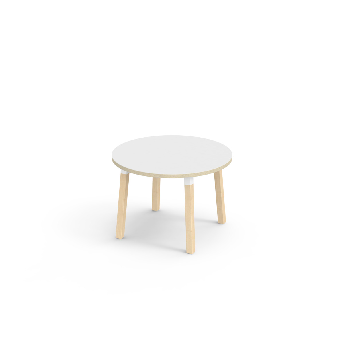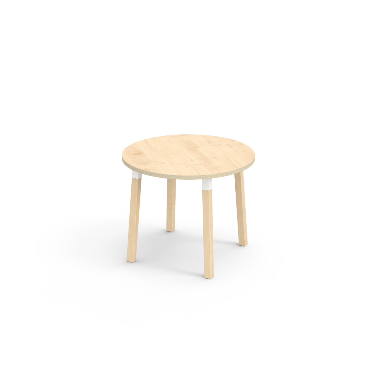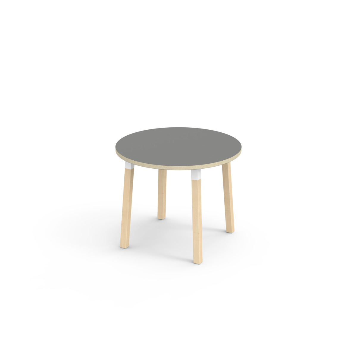 Bordplade belagt med laminat. Med en hjørneradius på 40 mm får bordet et moderne og stilrent design. Benene er fremstillet af klarlakeret massiv birk og monteret i en robust hvid manchet. Denne konstruktion sikre både stabilitet og holdbarhed. Benene er let vinklet ud mod bordpladens hjørner, hvilket giver bordet et unikt og æstetisk udseende. Monteringen er enkel og let – du skal blot fastgøre metaldelene i de forberedte monteringspunkter i bordpladen.