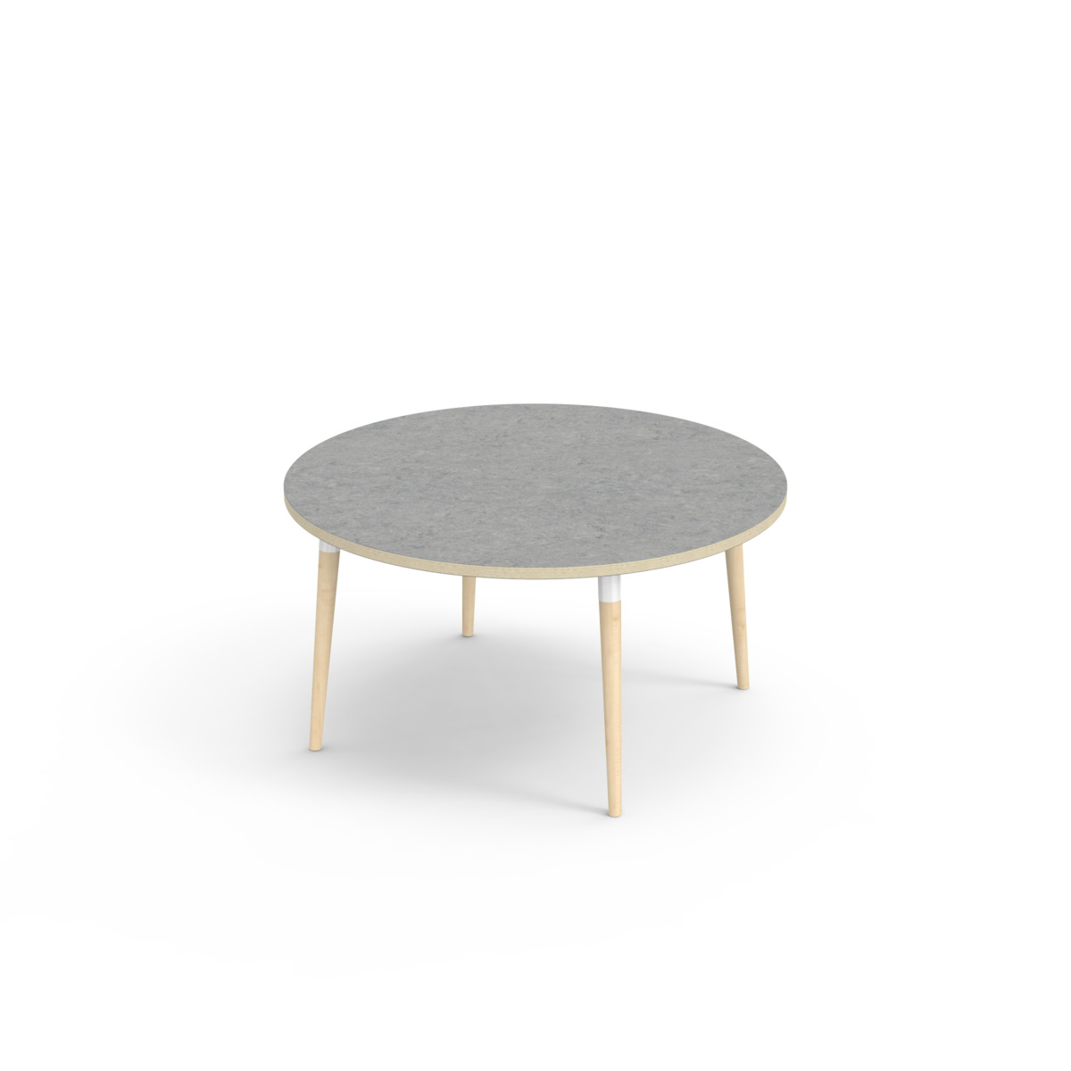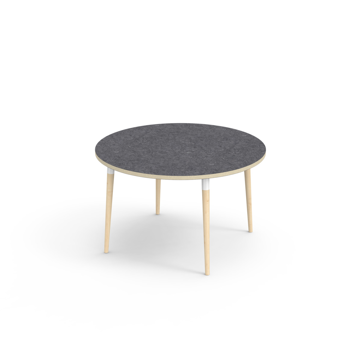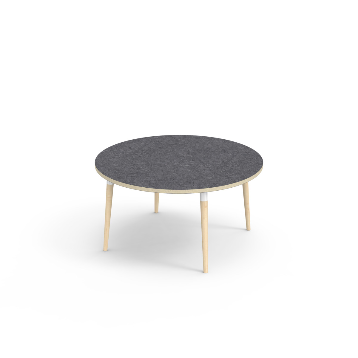 Bordplade belagt med akustik linoleum, hvilket giver en blød og behagelig overflade, samtidig med at den bidrager til en bedre lydmiljø. Med en hjørneradius på 40 mm får bordet et moderne og stilrent design. Benene er fremstillet af klarlakeret massiv birk og monteret i en robust sort manchet. Denne konstruktion sikre både stabilitet og holdbarhed. Benene er let vinklet ud mod bordpladens hjørner, hvilket giver bordet et unikt og æstetisk udseende. Monteringen er enkel og let – du skal blot fastgøre metaldelene i de forberedte monteringspunkter i bordpladen.