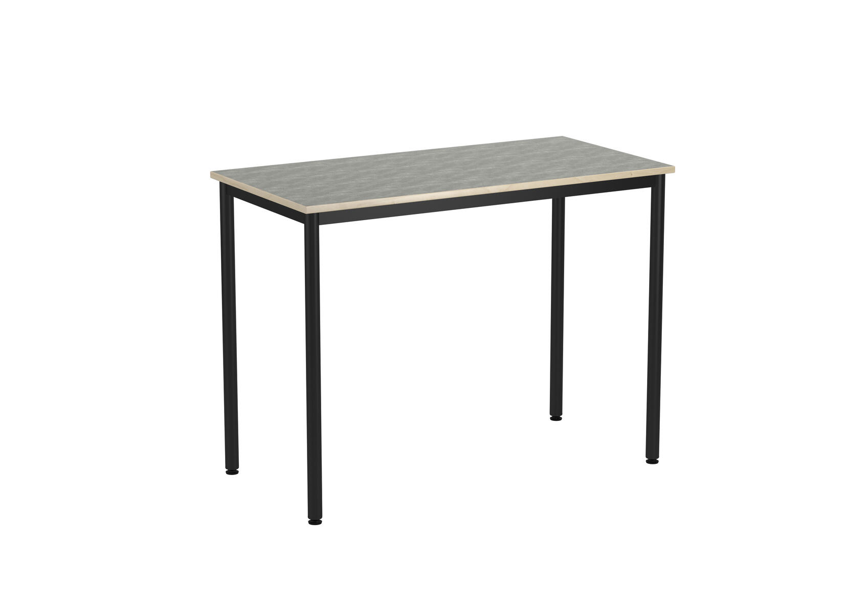 Bordplade med lyddæmpende overflade i linoleum. Justerbare stilleskruer sikrer, at bordet står stabilt selv på ujævne overflader. Understel i sort RAL 9005.