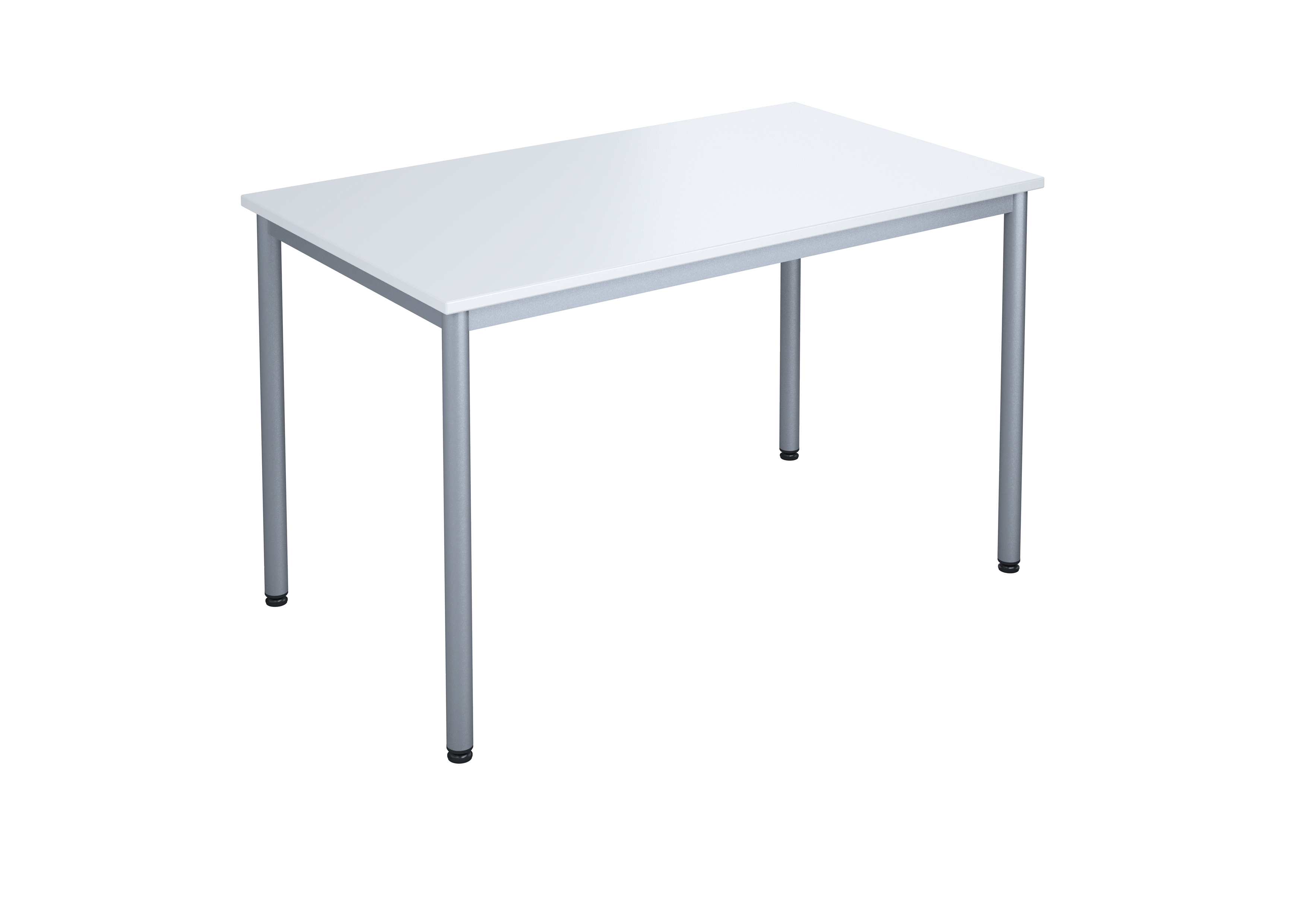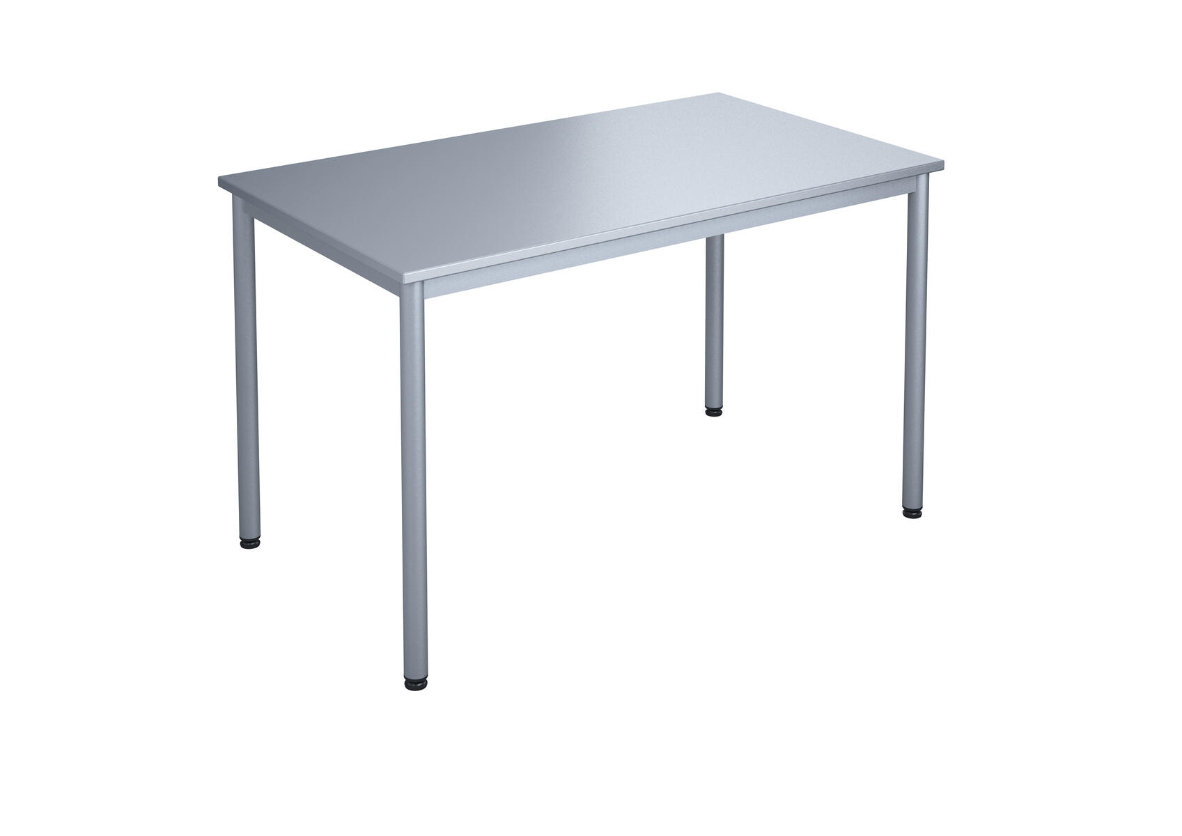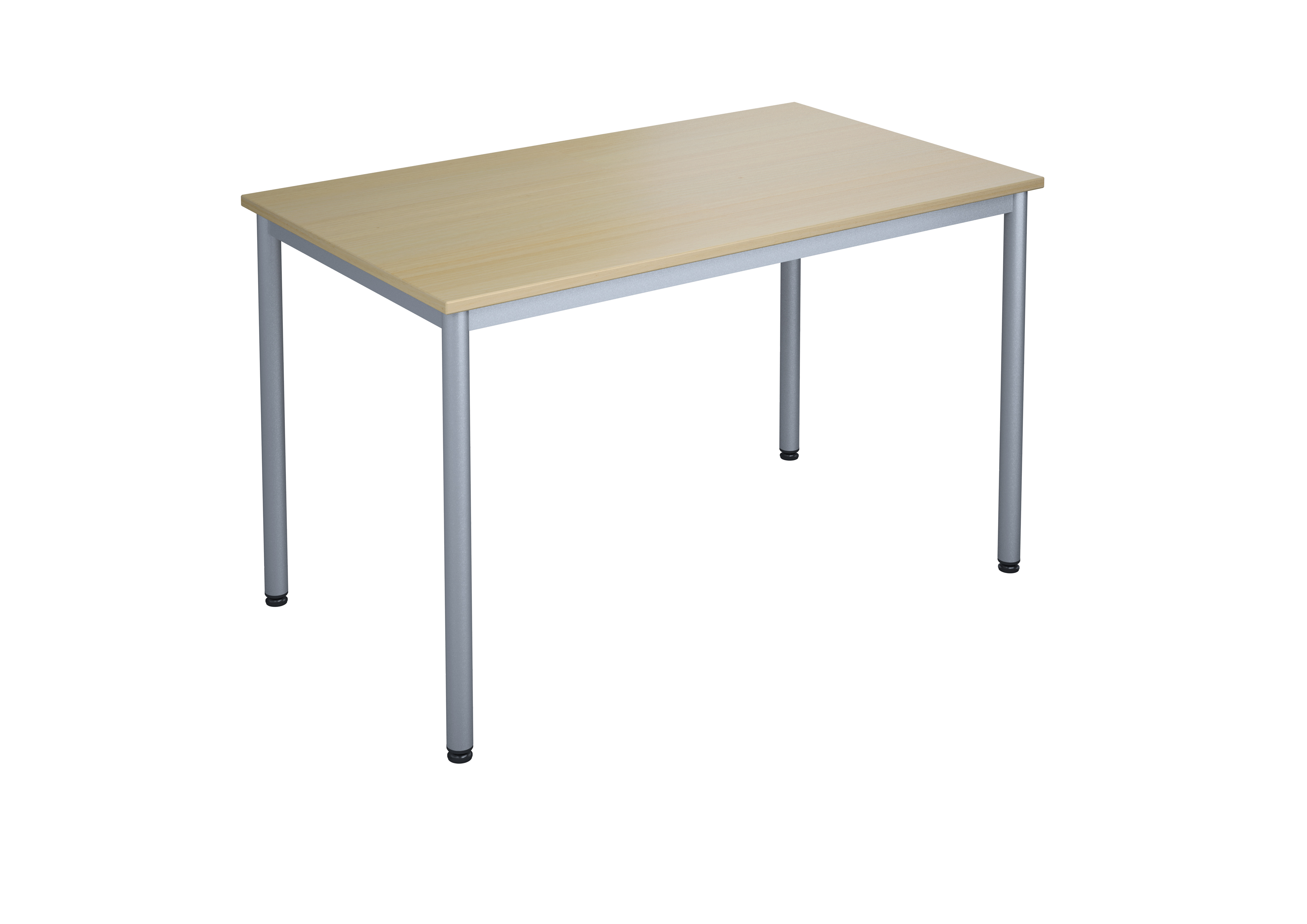 Lyddæmpende bordplade i slidstærkt højtrykslaminat med lydabsorbent på undersiden. Justerbare stilleskruer sikrer, at bordet står stabilt selv på ujævne overflader. Understel i sølv RAL 9006.
