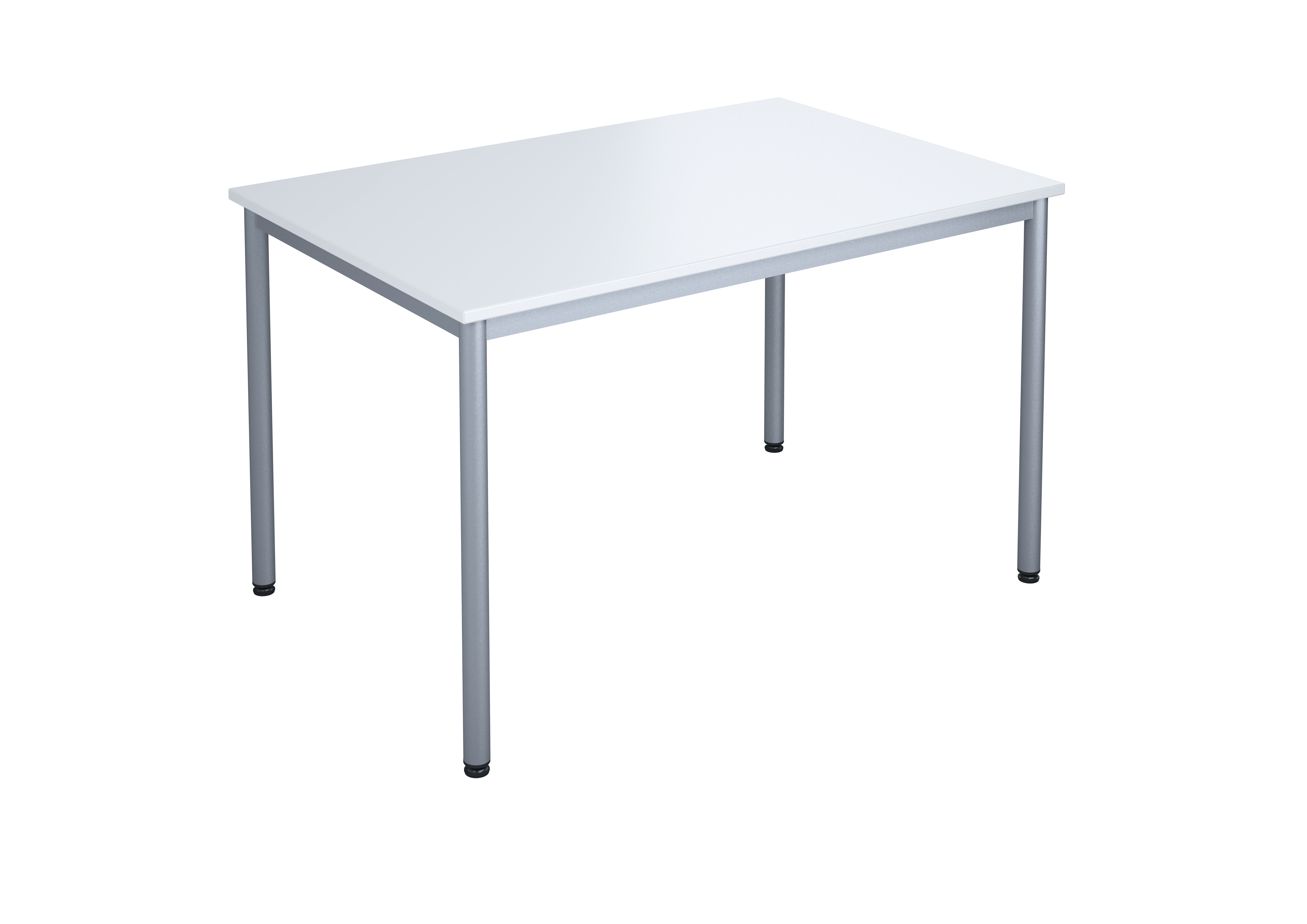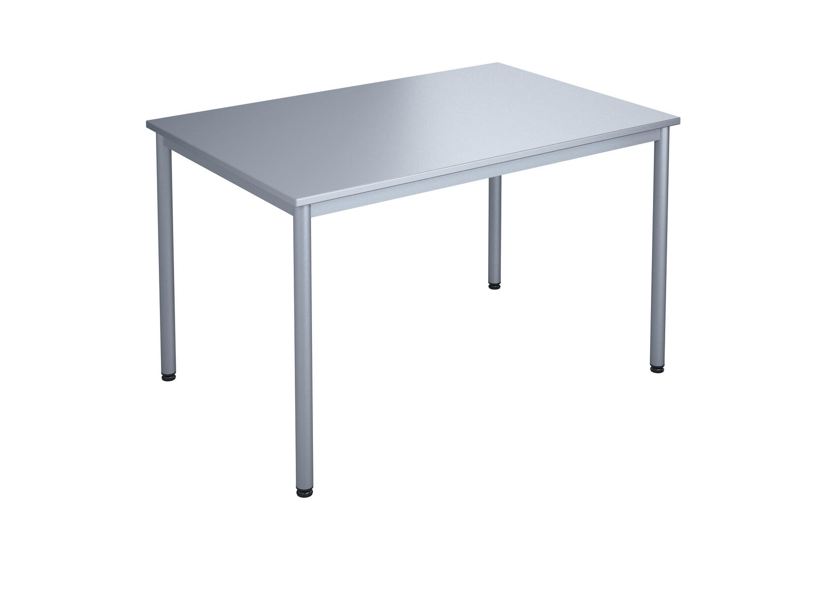 Bordplade i slidstærkt højtrykslaminat. Justerbare stilleskruer sikrer, at bordet står stabilt selv på ujævne overflader. Understel i sølv RAL9006.