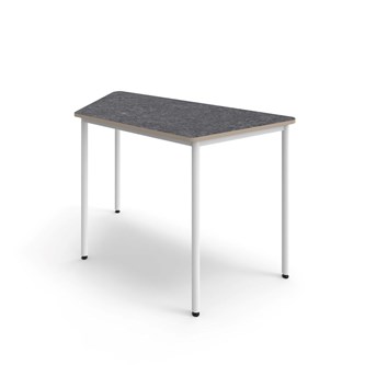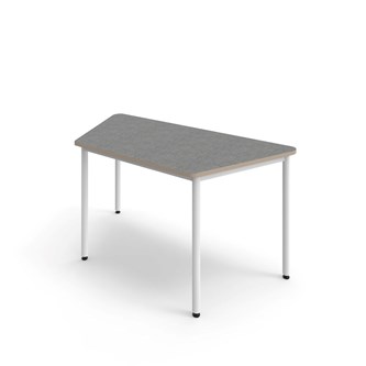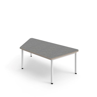 Bordplade med lyddæmpende overflade i linoleum og lydabsorbent på undersiden. Justerbare stilleskruer sikrer, at bordet står stabilt selv på ujævne overflader. Understel i hvid RAL 9003.