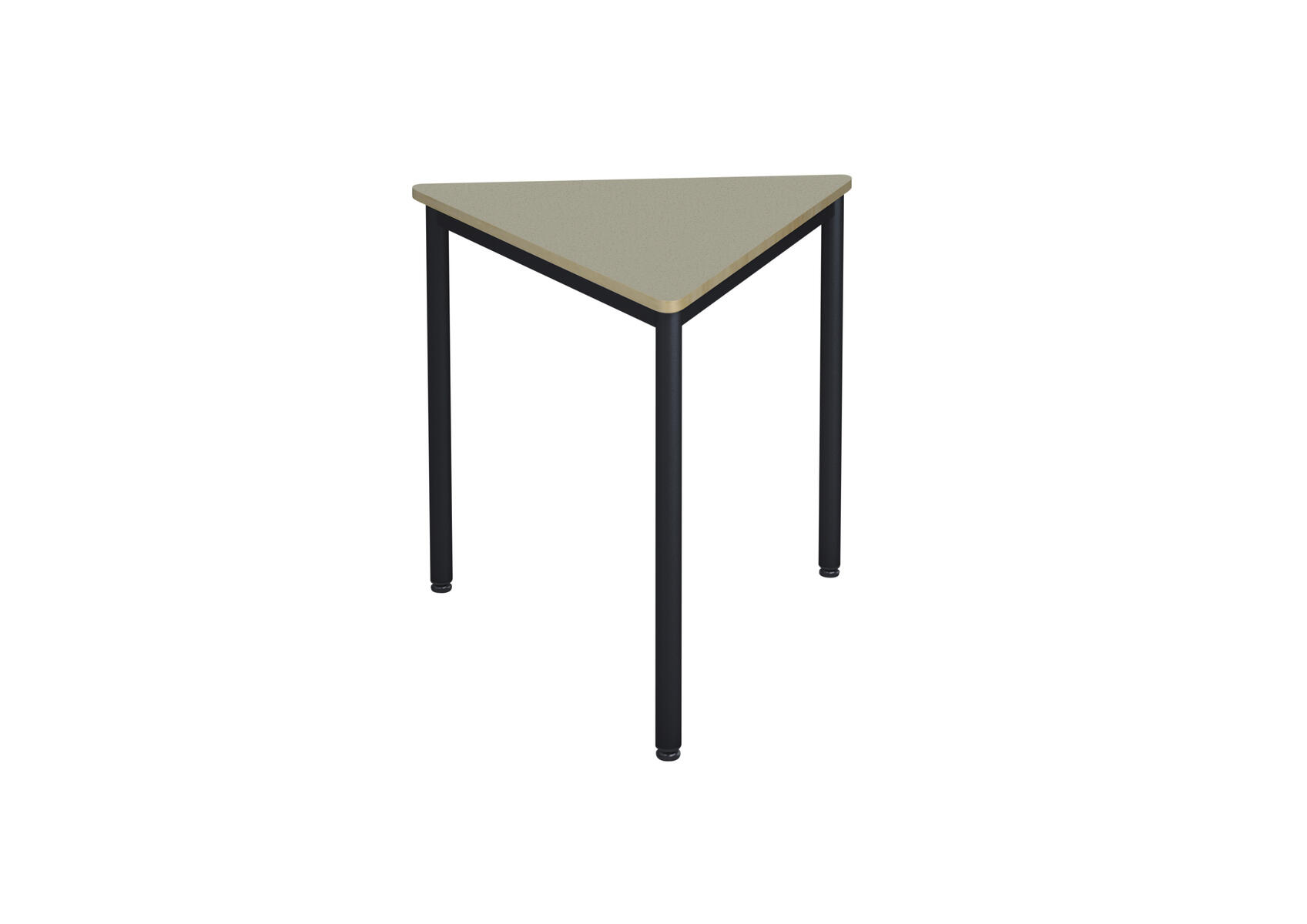 Bordplade med lyddæmpende overflade i linoleum. Justerbare stilleskruer sikrer, at bordet står stabilt selv på ujævne overflader. Understel i sort RAL 9005.