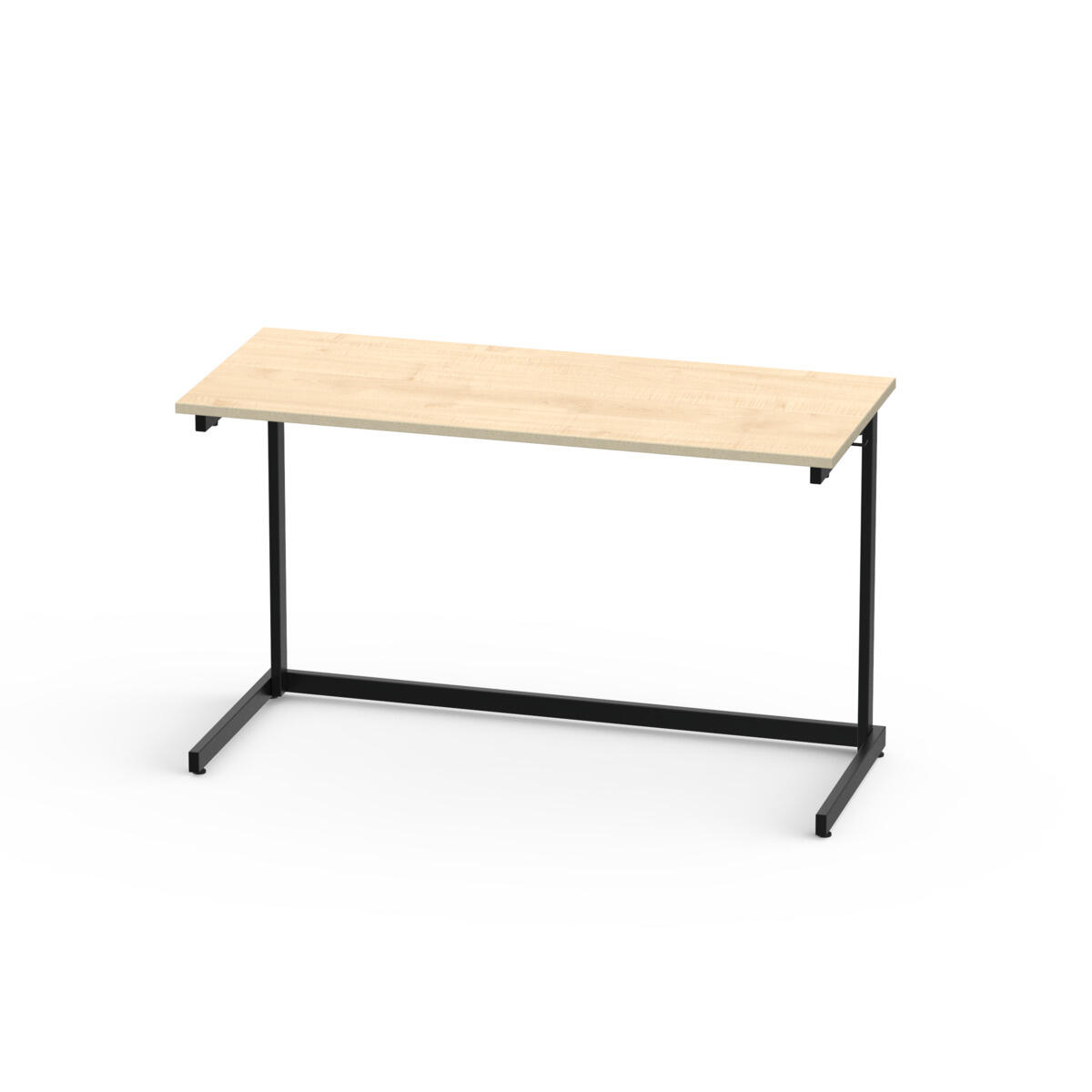 Lex bord med L-formet understel, der gør det muligt at stable bordene (maks. 6 stk.). Udstyret med taskekrog. Helsvejst understel i sort, RAL 9005. Bordplade i laminat. Fire justerbare fødder. Som tilvalg kan skuffeskinner monteres under bordpladen. Opbevaringsskuffe kan tilkøbes under varenr. 23416..