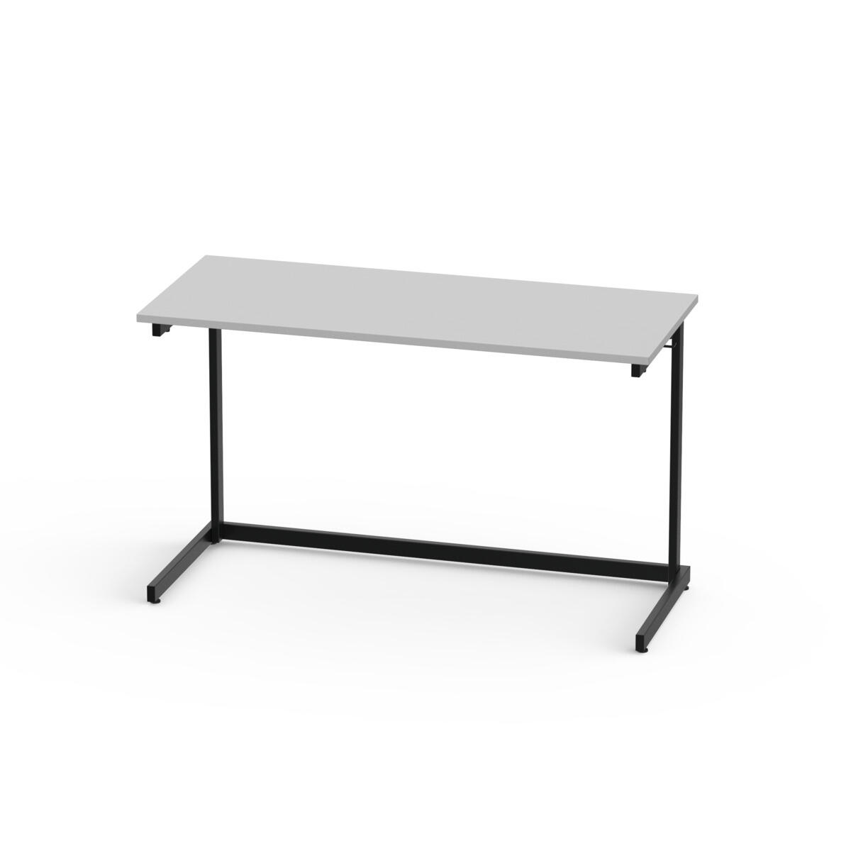 Lex bord med L-formet understel, der gør det muligt at stable bordene (maks. 6 stk.). Udstyret med taskekrog. Helsvejst understel i sølv, RAL 9006. Bordplade i laminat. Fire justerbare fødder. Som tilvalg kan skuffeskinner monteres under bordpladen. Opbevaringsskuffe kan tilkøbes under varenr. 23416..