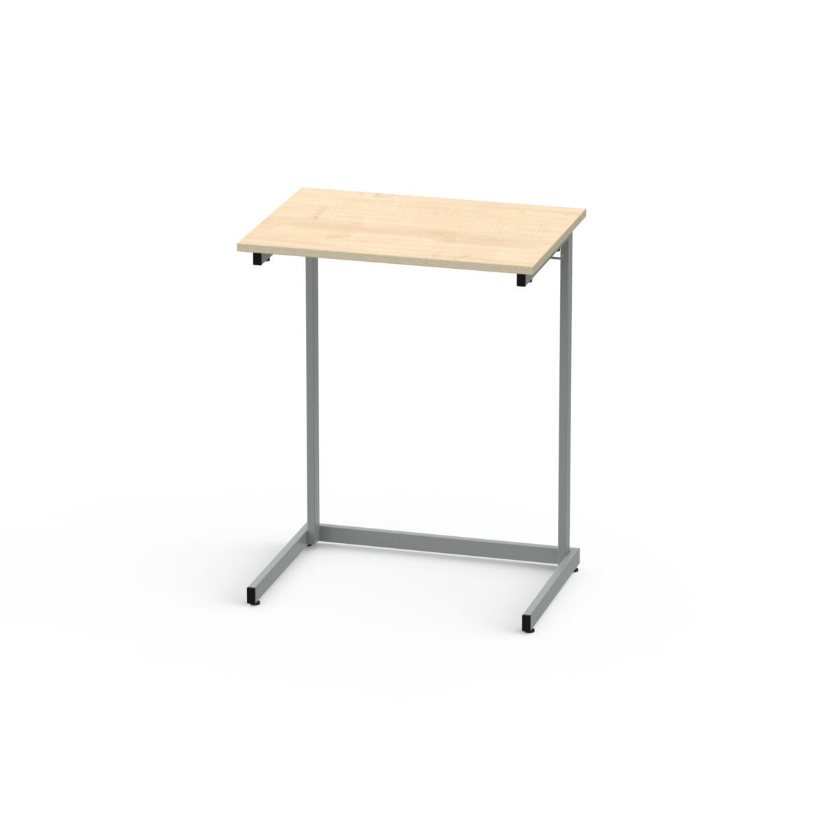 Lex bord med L-formet understel, der gør det muligt at stable bordene (maks. 6 stk.). Udstyret med taskekrog. Helsvejst understel i sølv, RAL 9006. Bordplade i støjdæmpende højtrykslaminat. Fire justerbare fødder. Som tilvalg kan skuffeskinner monteres under bordpladen. Opbevaringsskuffe kan tilkøbes under varenr. 23416.