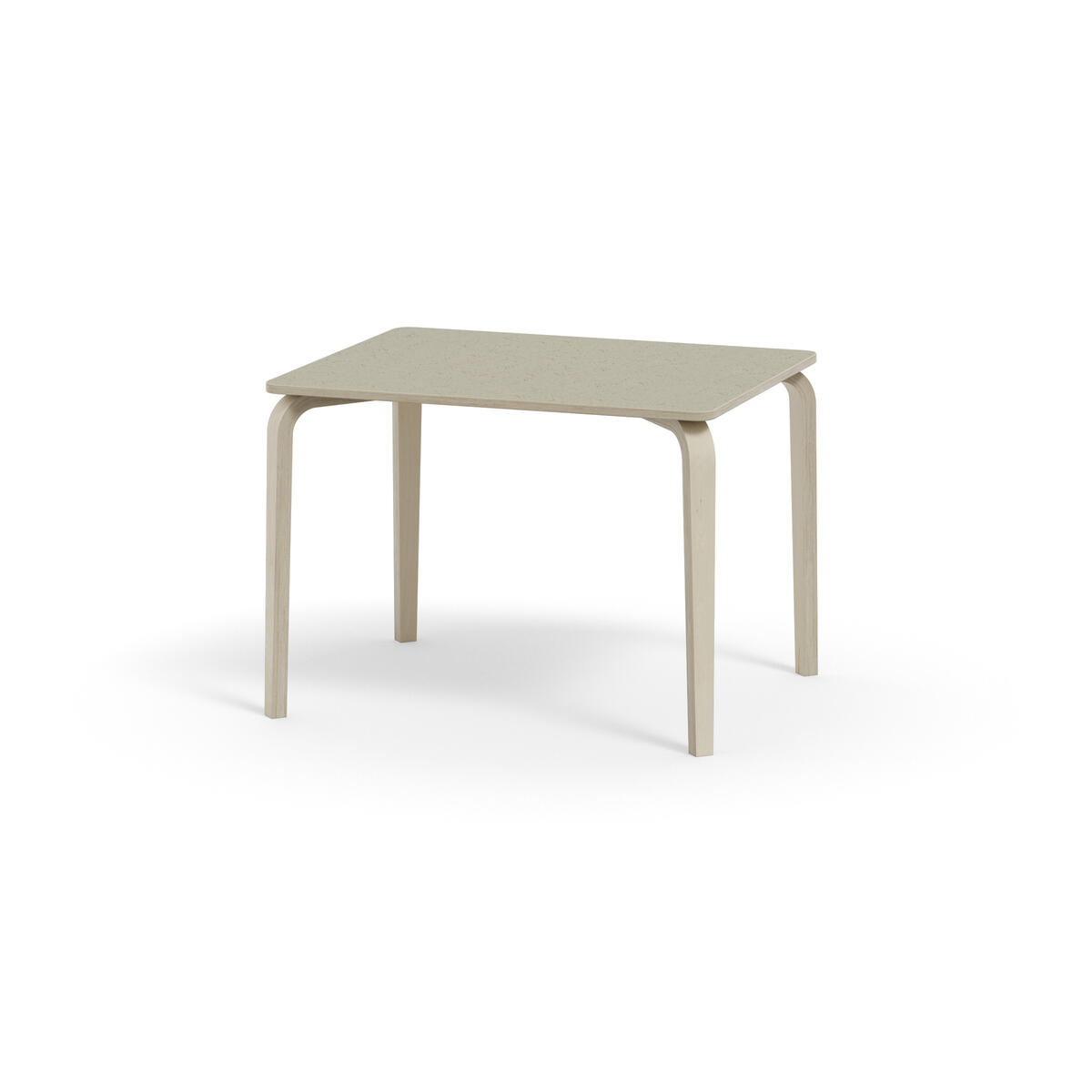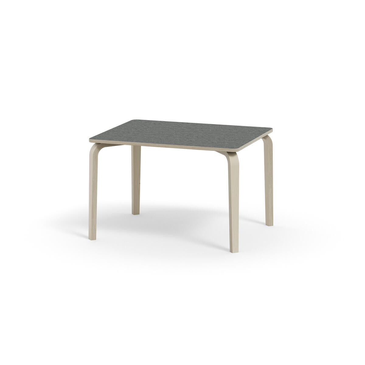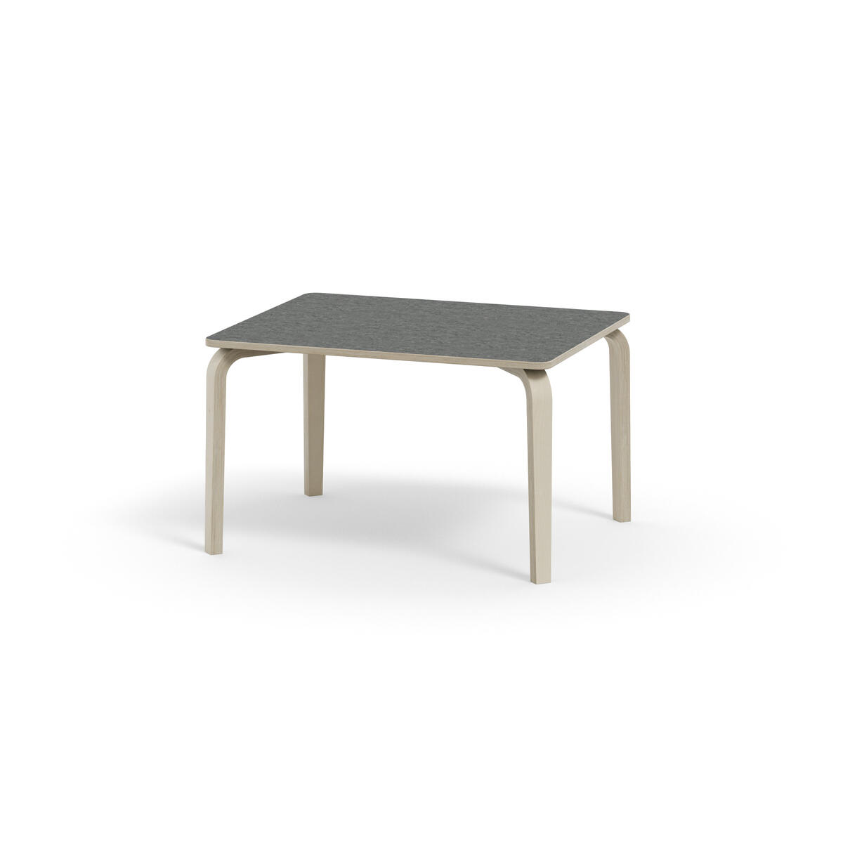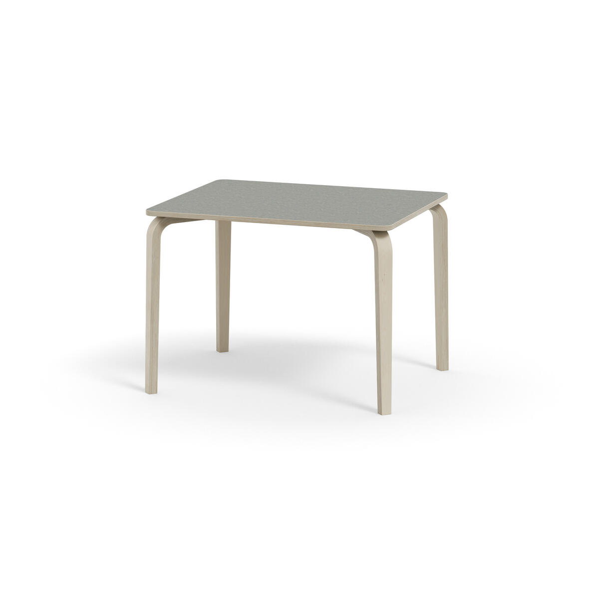 Bordserien Arcus har et praktisk design uden sarg, hvilket giver mere plads til benene. Overfladen er beklædt med linoleum. Hjørneradius på 40 mm. Formspændte bordben i birkekrydsfiner med let tilspidset form.