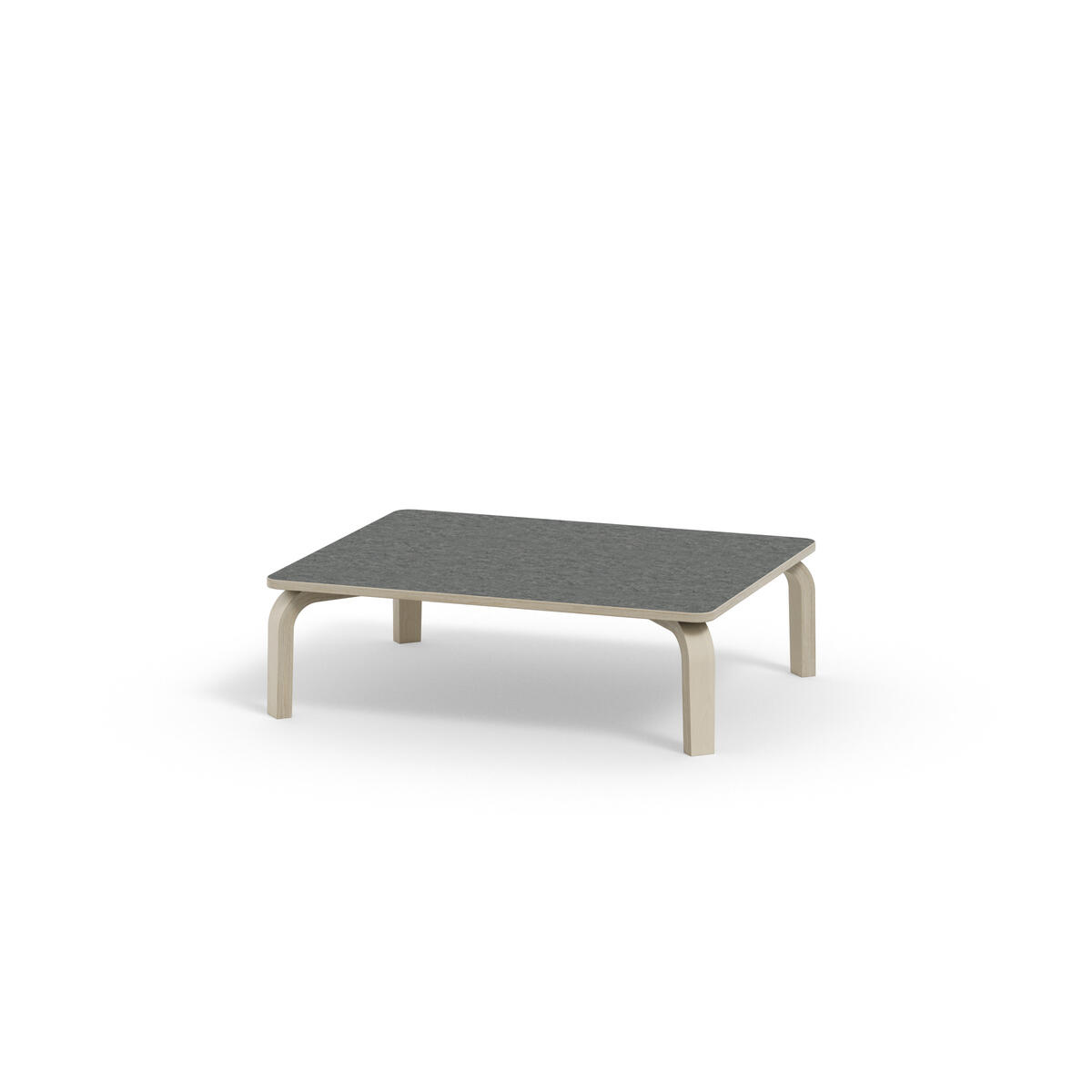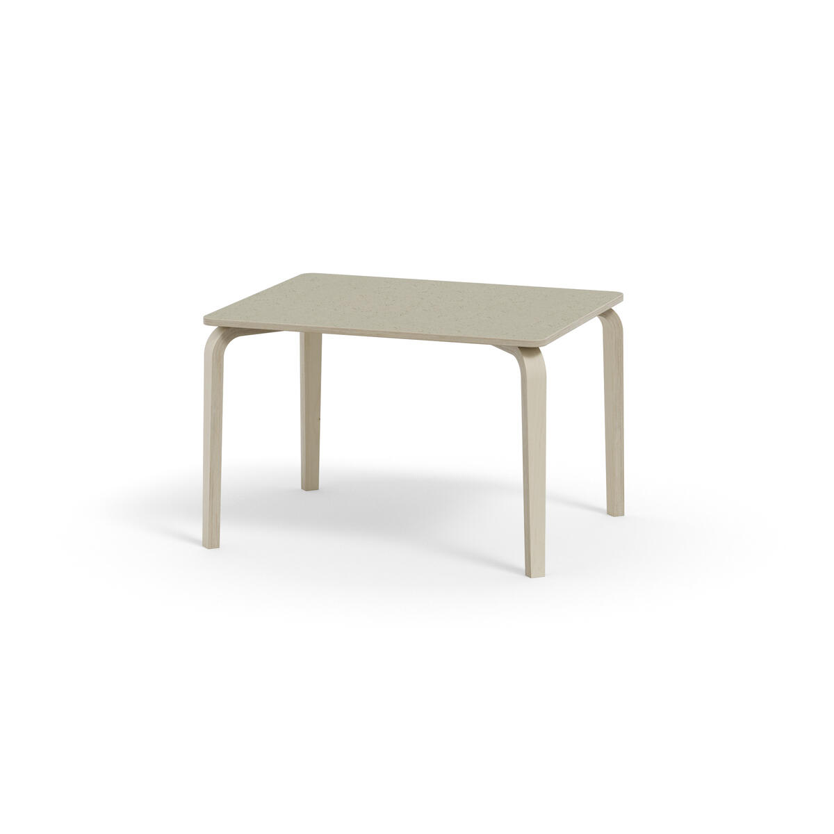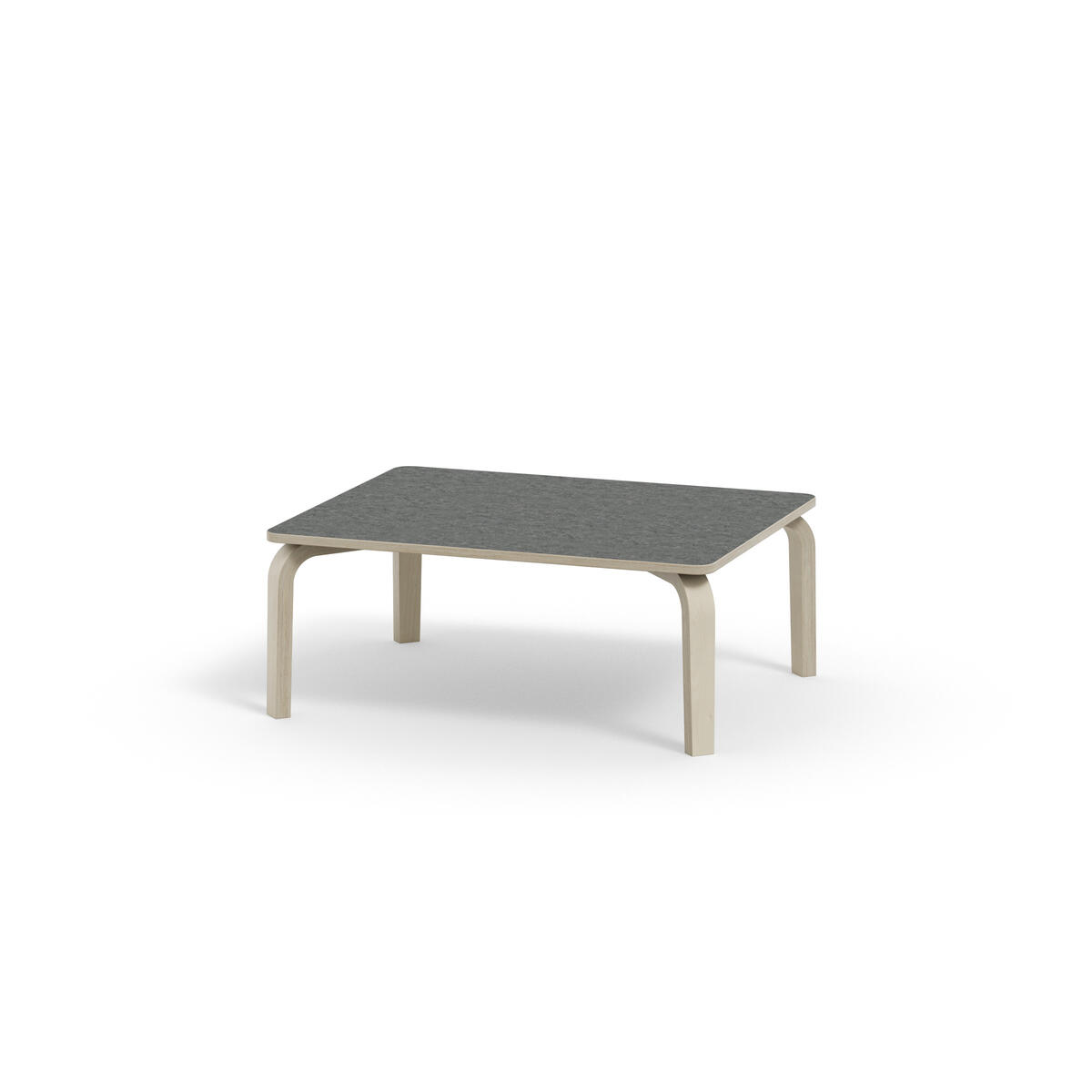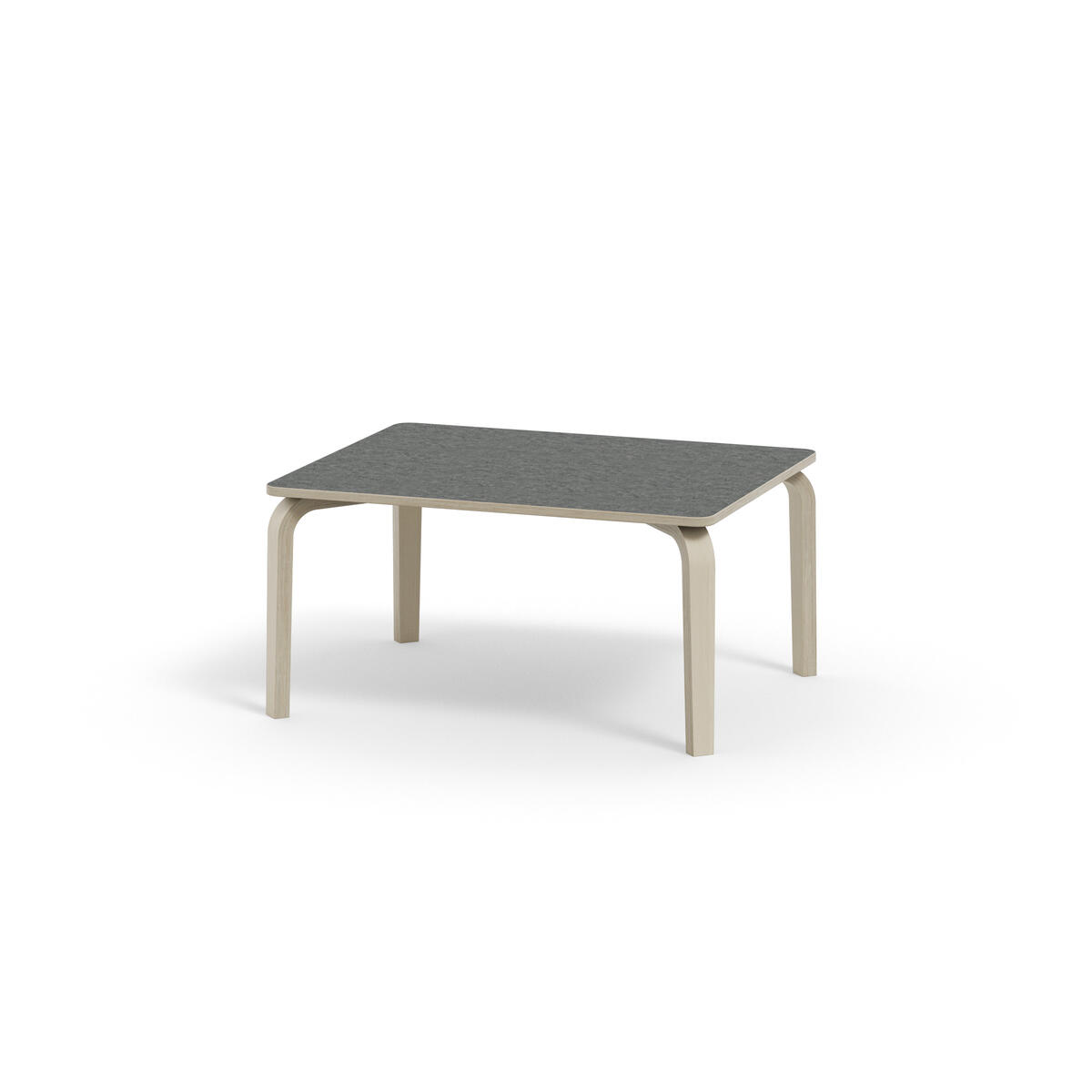 Bordserien Arcus har et praktisk design uden sarg, hvilket giver mere plads til benene. Overfladen er beklædt med linoleum. Hjørneradius på 40 mm. Formspændte bordben i birkekrydsfiner med let tilspidset form.