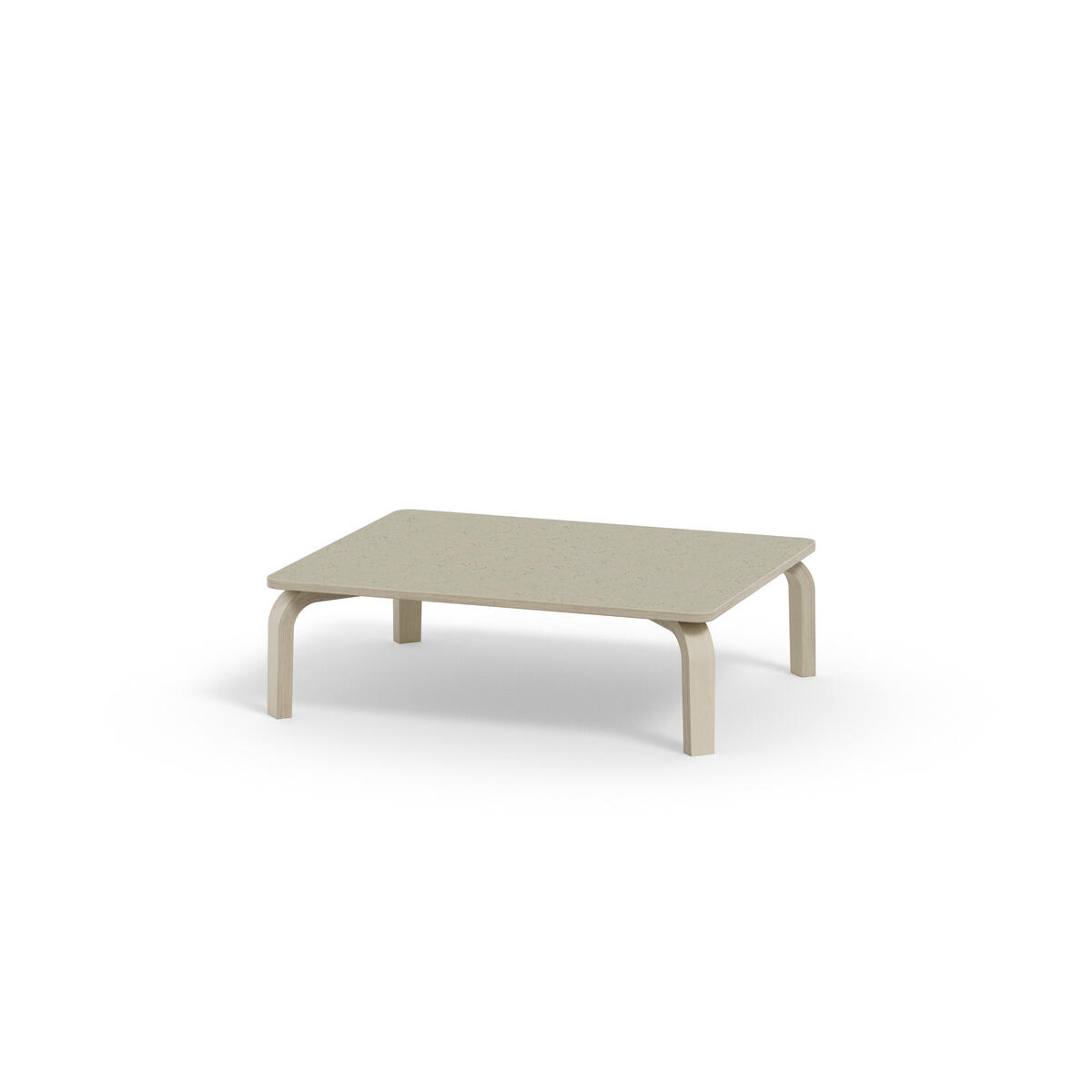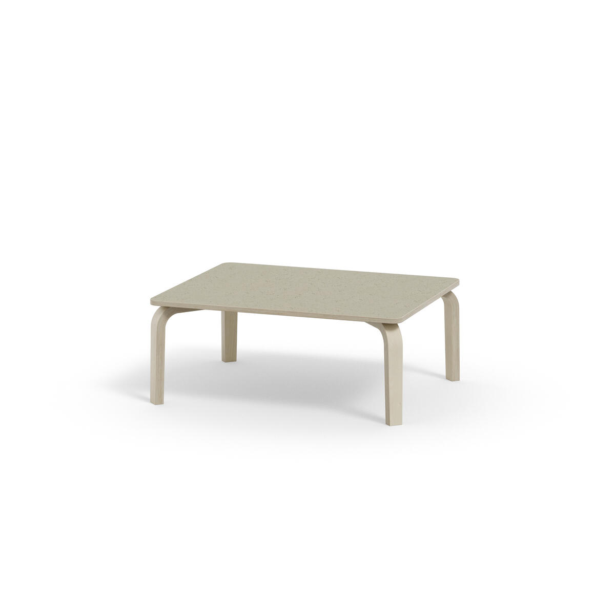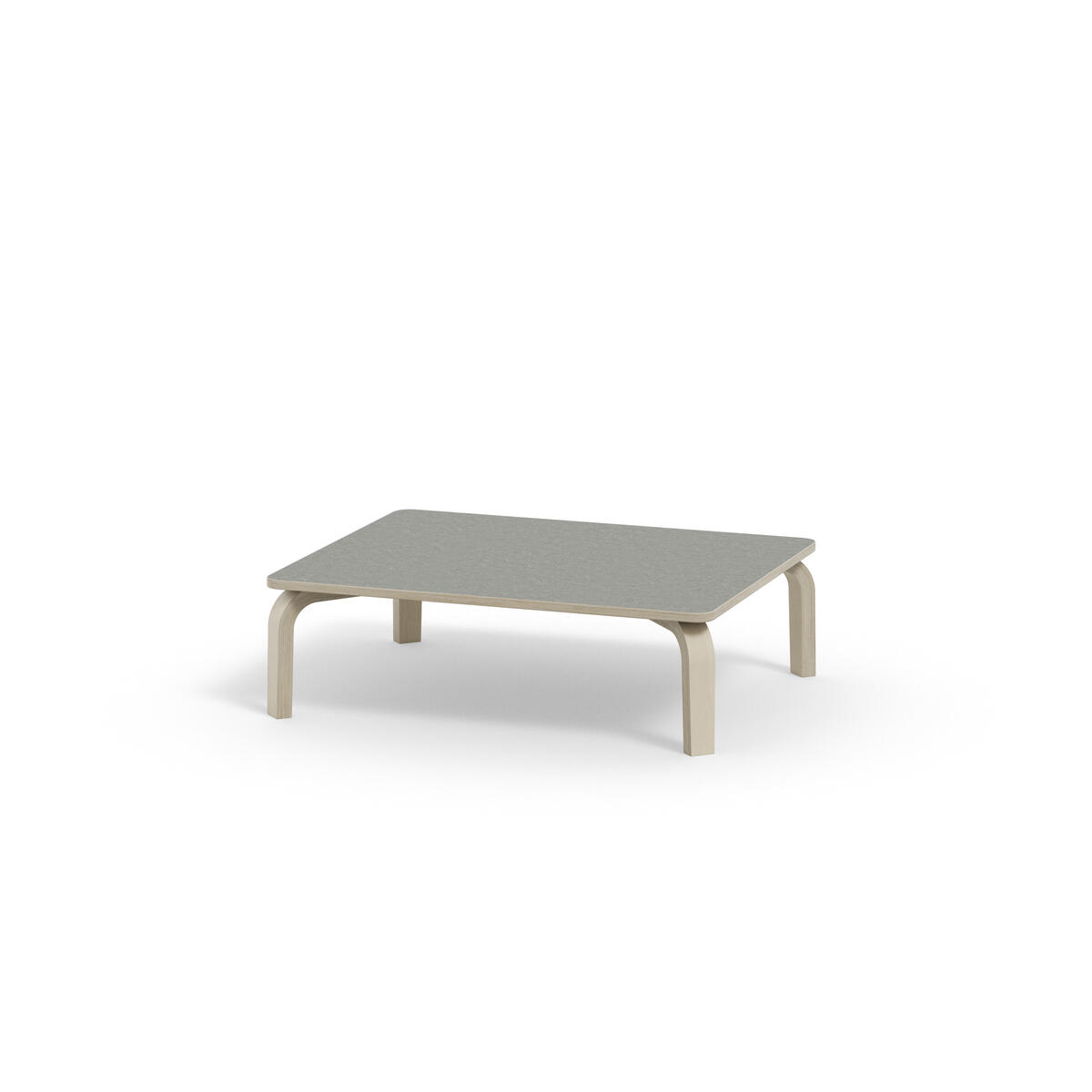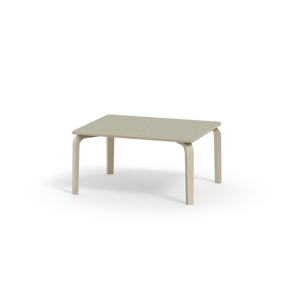 Bordserien Arcus har et praktisk design uden sarg, hvilket giver mere plads til benene. Overfladen er beklædt med linoleum. Hjørneradius på 40 mm. Formspændte bordben i birkekrydsfiner med let tilspidset form.
